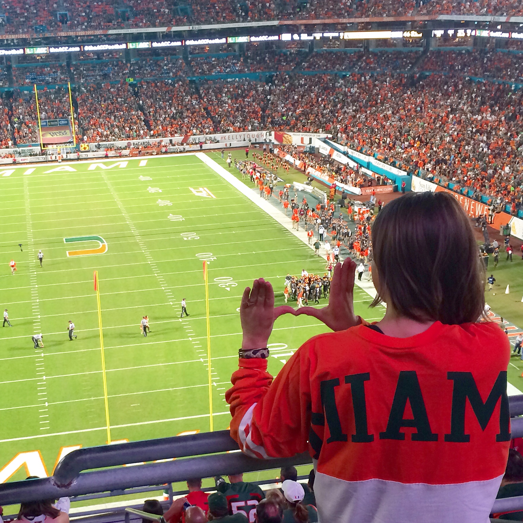 “Southern suns and sky blue water, smile upon you Alma mater.” One of the fastest trips of my life; we left for the airport Friday afternoon and drove four hours to catch a plane in New Orleans to sunny Miami, so that we could watch our Canes play FSU on Saturday evening. Our flight home left Sunday morning at 9 am. Every minute was worth it. I saw all of my best friends. Tailgating. Our beautiful campus. Miami will always be my second home.