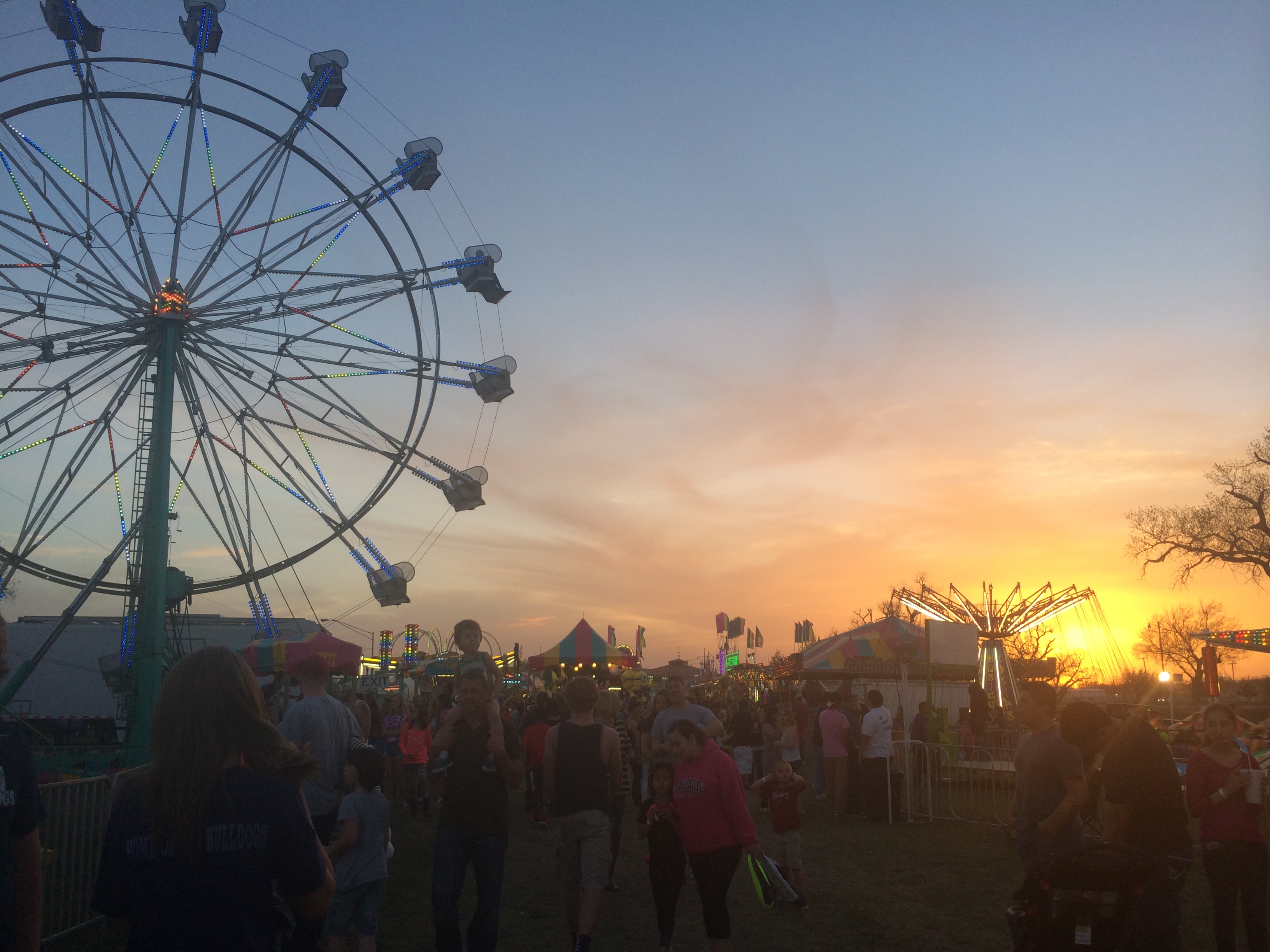 I wanted to go on a walk after dinner. Through the neighborhood, across the field. We stumbled across a little carnival. The middle-of-nowhere is a beautiful place.