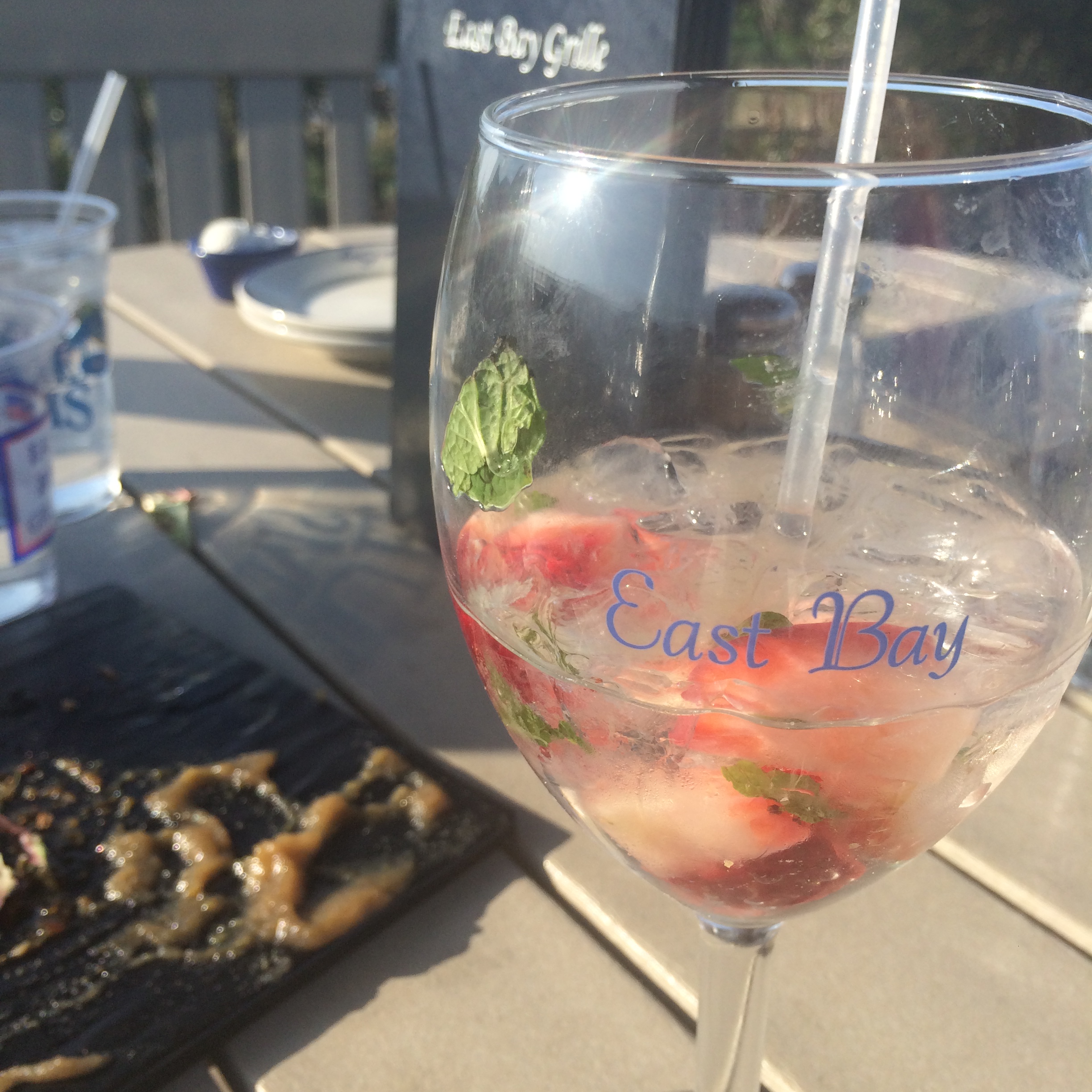 I love being home. I love it, and I’m sad to be leaving in a few weeks. So I’m savoring every moment. Today, friends, food, drinks with a view. A beautiful day to sit at the East Bay Grille.