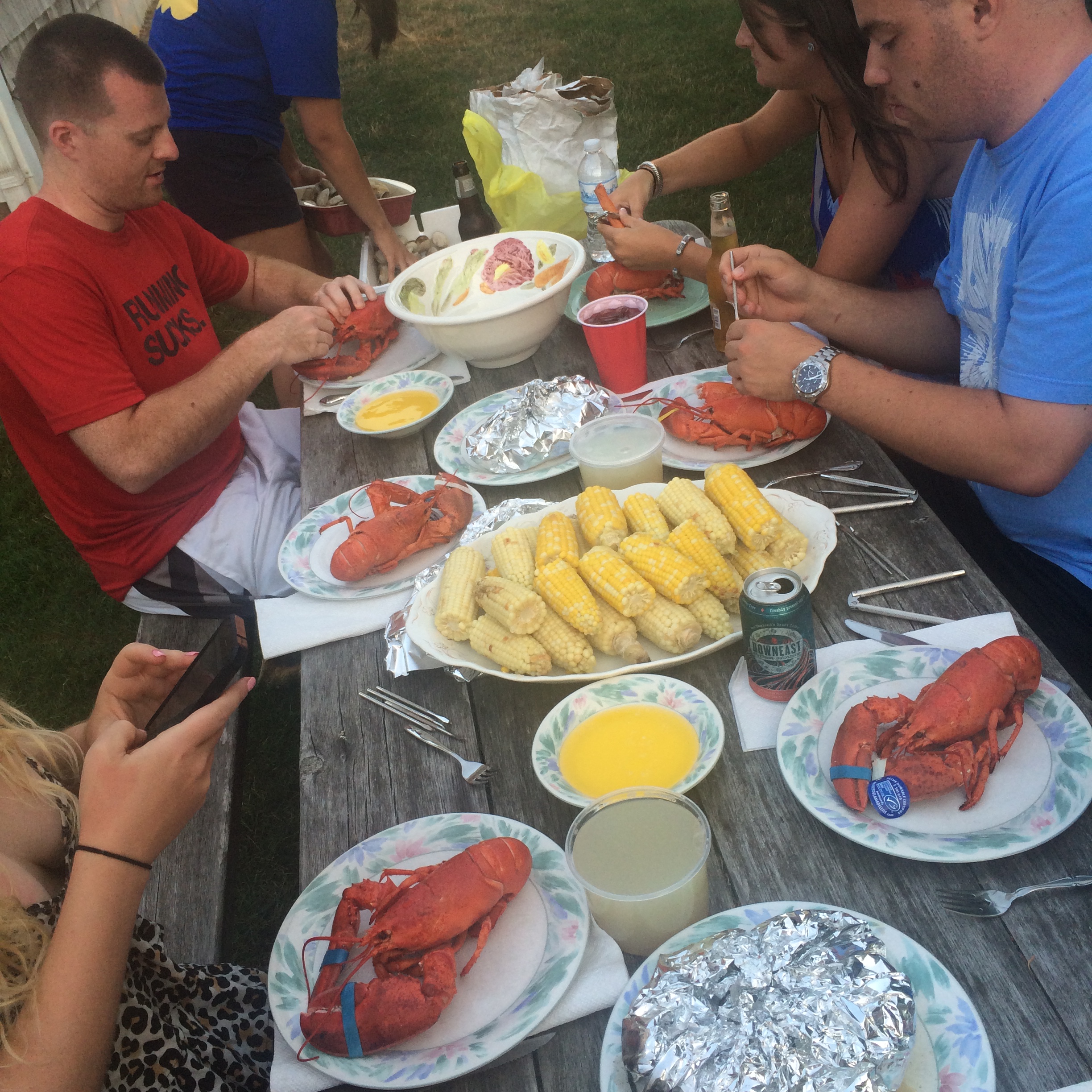 My heart is so full. I love my friends so much. From all over the world, here we are, together. A week on the Cape. Lobsters, steams, corn on the cob, summer squash. A family dinner.