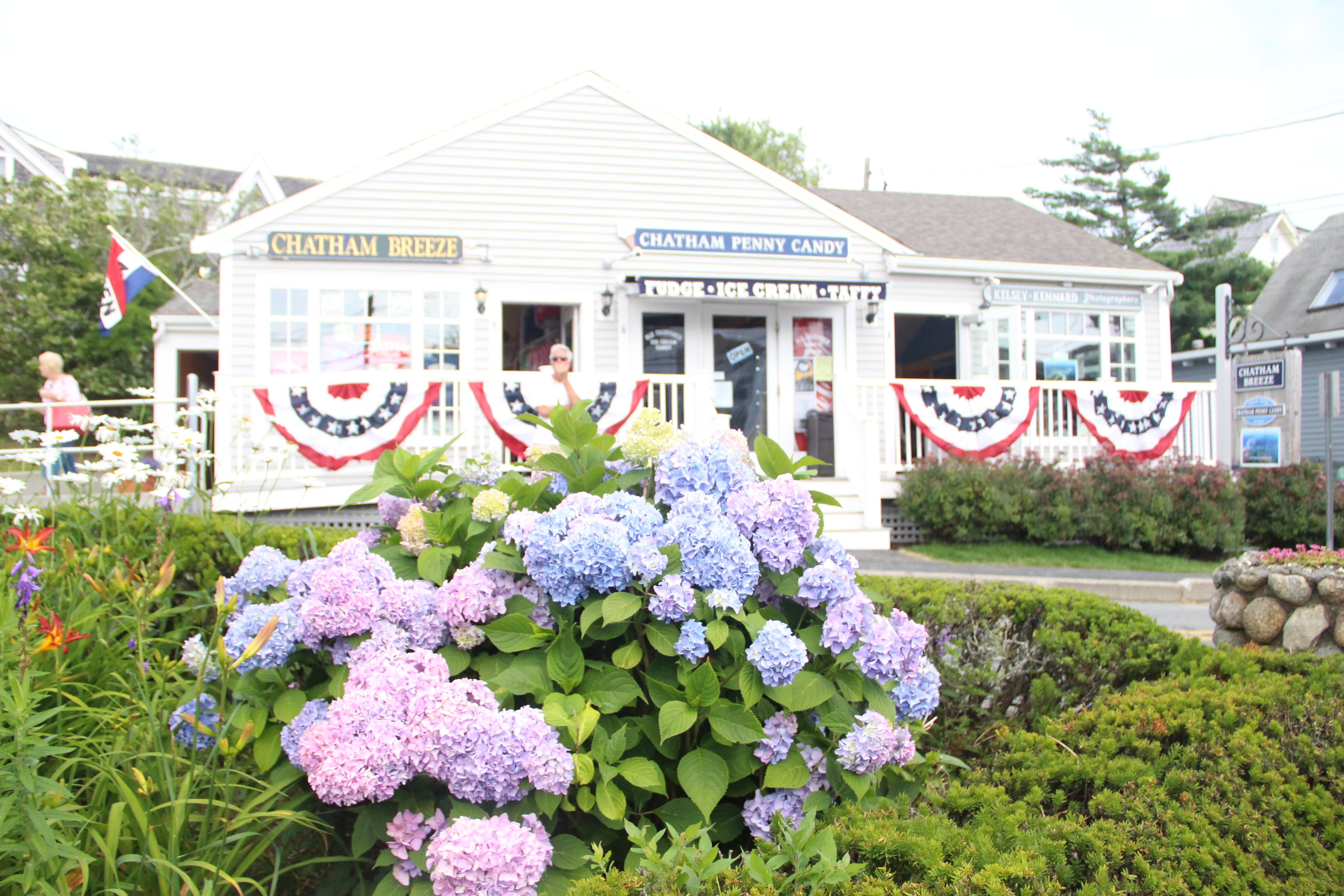 Peak hydrangea-season, mid-July on Cape Cod. My aunt, my grandmother, my brother and I spent the day in Chatham, touring the local gardens of the annual Hydrangea Festival. To be perfectly honest, though, the tours weren’t really necessary. The most beautiful hydrangeas of all were out in public, free for all to see. Chatham Main Street was fully in bloom.