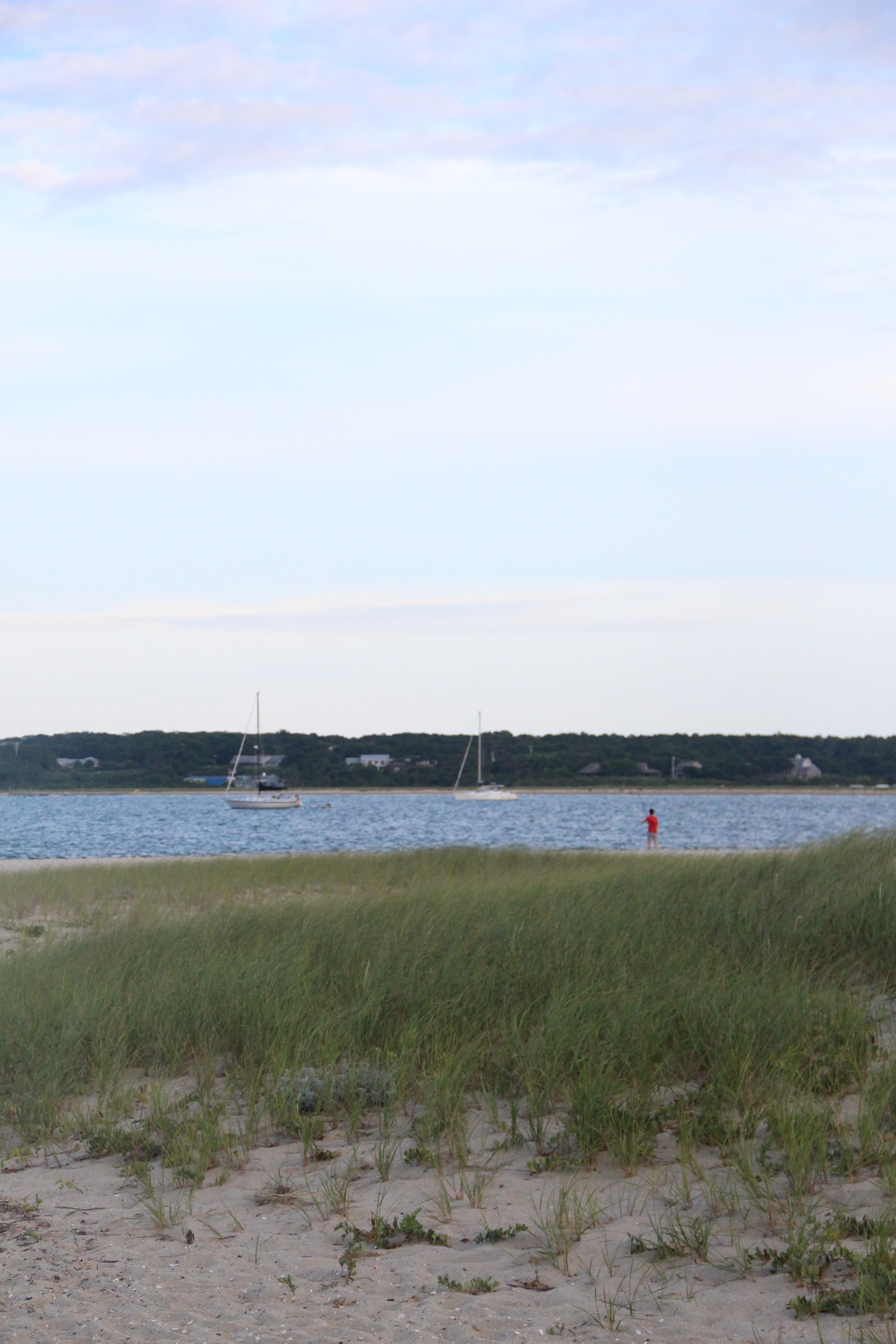 Pre-sunset, post-ferry at Edgartown Harbor. We took the ferry to the island from the mainland earlier in the afternoon, and after checking into our room, we caught the bus from OB. Detour to brewery on the main road, then wandering until we made it to town and beyond to the lighthouse. It’s like a painting to me. The colors are so, so vivid. The camera could never capture them. And then there’s the quiet and the salt. The sand in your feet, alone on the beach on an island in the middle of the sea.