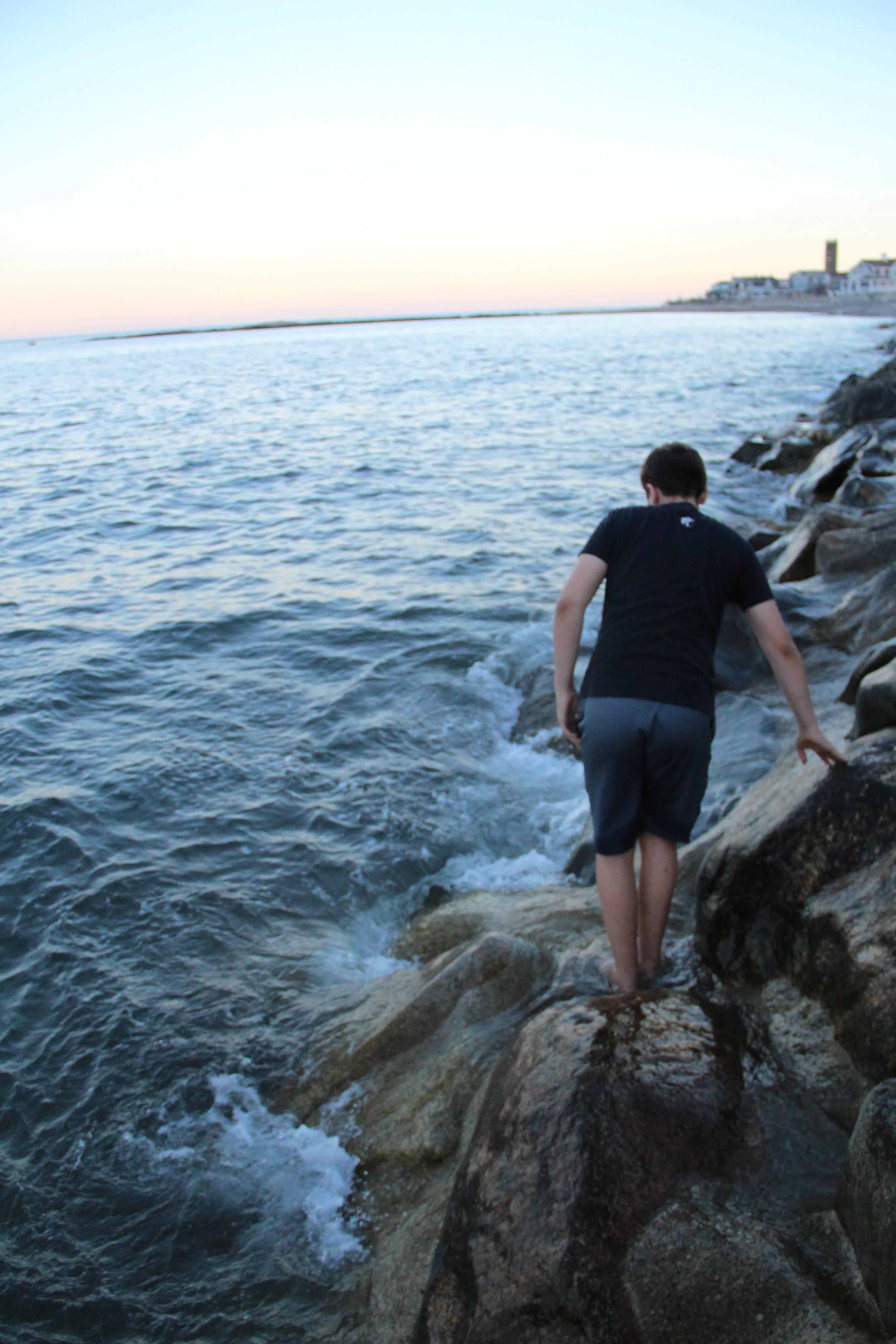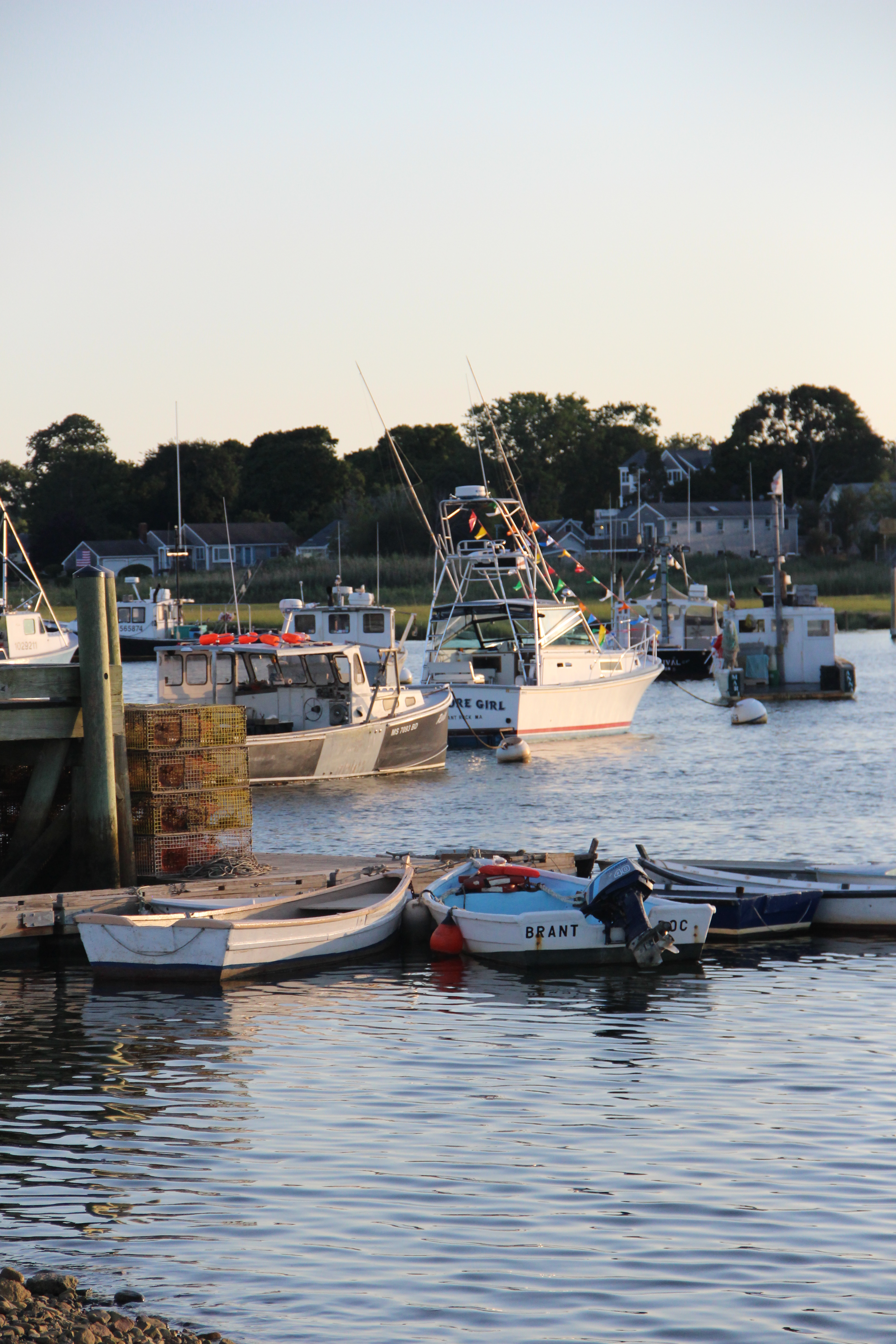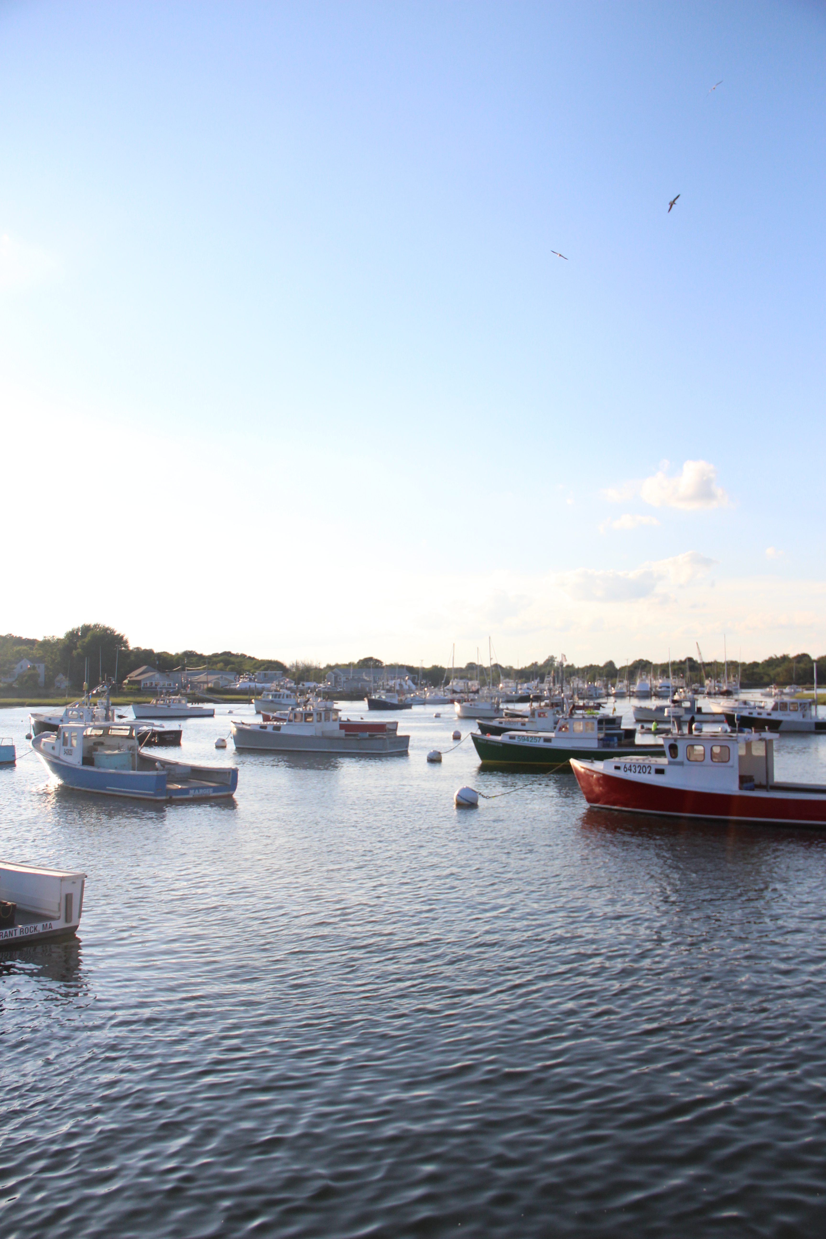 My last day at home of the summer. Hot. Extremely hot. Mussels and clam ‘chowdah.’ The last catch of the day, trucks pulling boats from the water. Waves crashing on the rocks at high-tide, a seawall sunset.