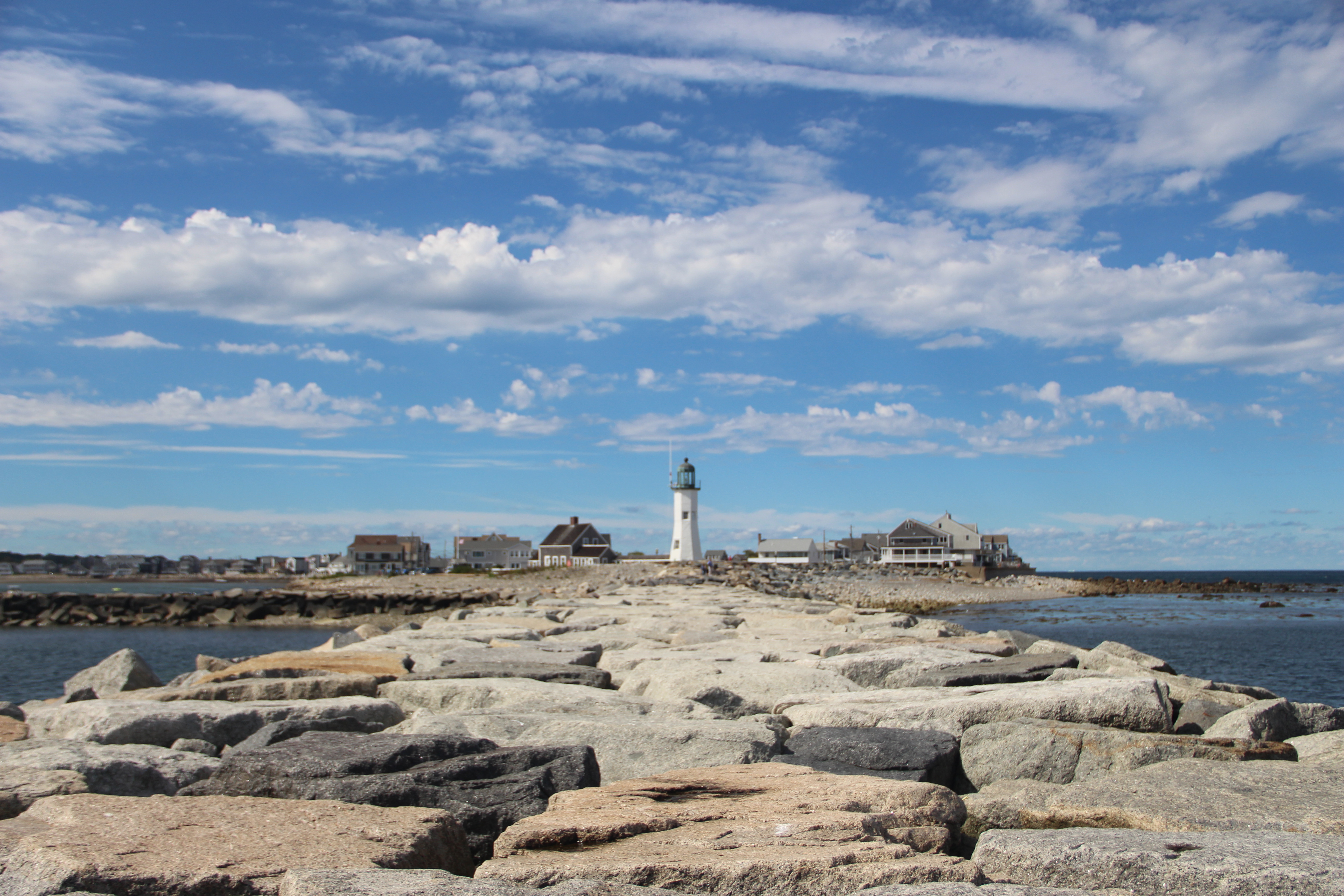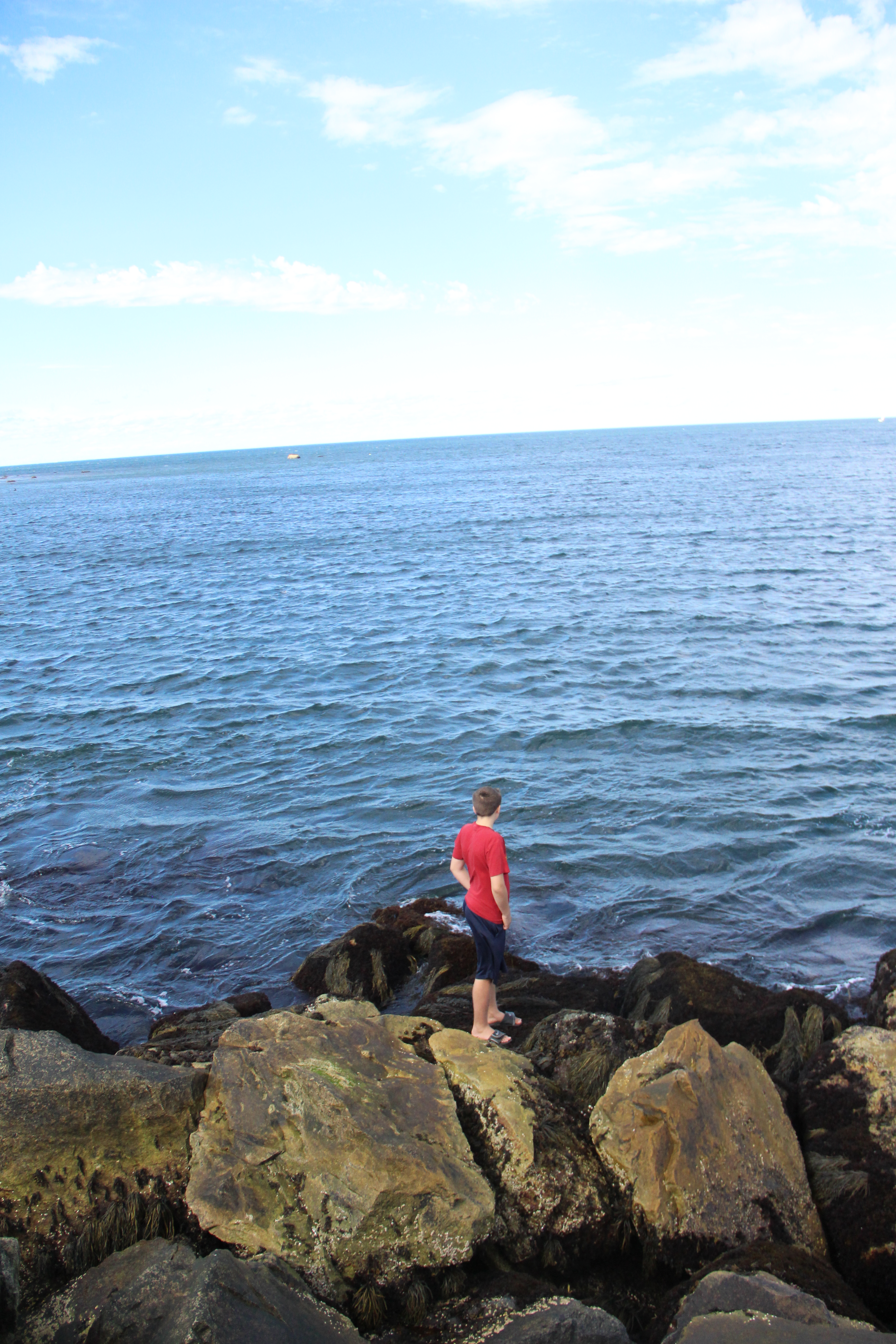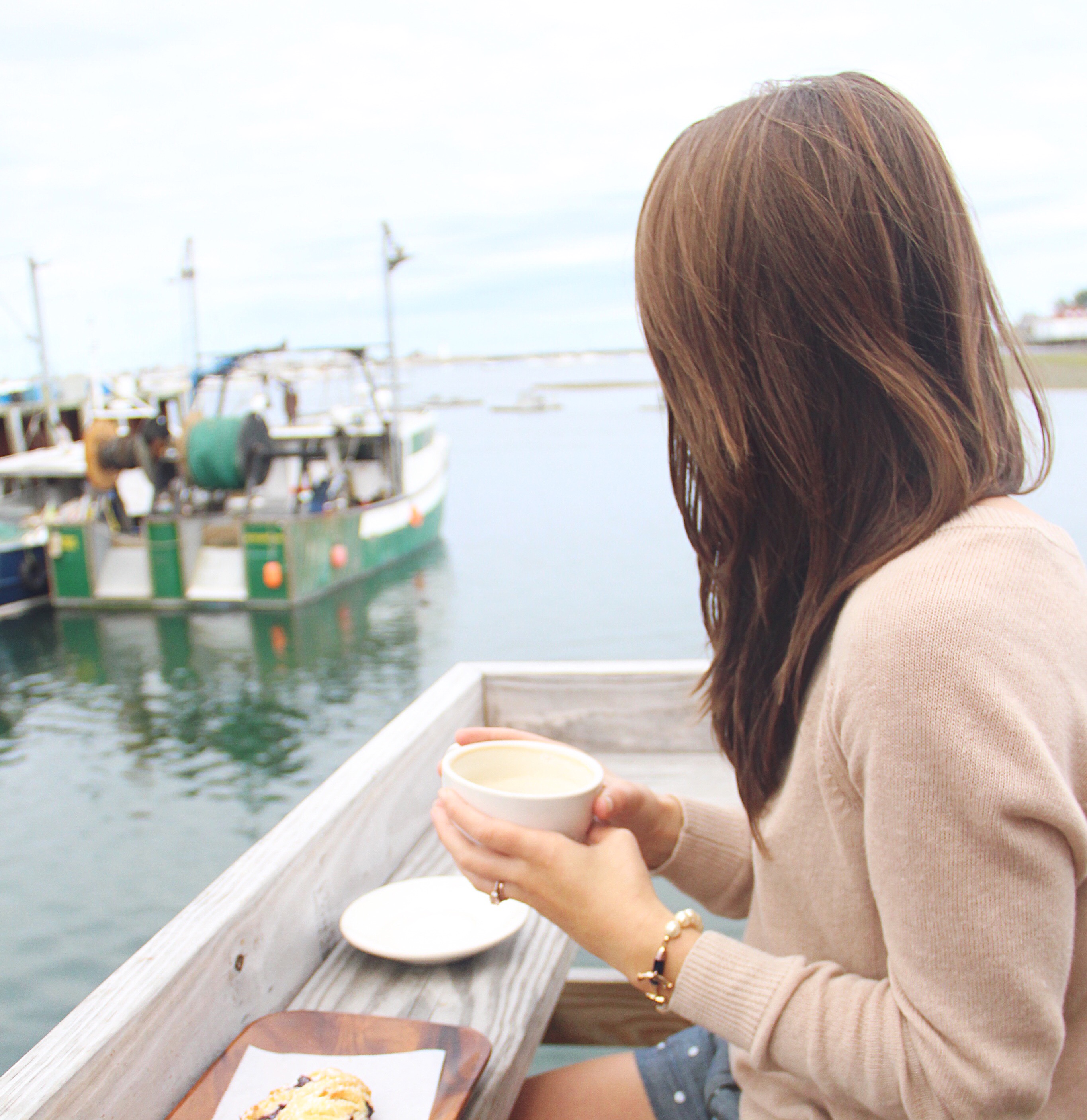 A grey and misty morning; a warm afternoon. Coffee and croissants on the pier, a walk to the lighthouse, sail-boat watching.