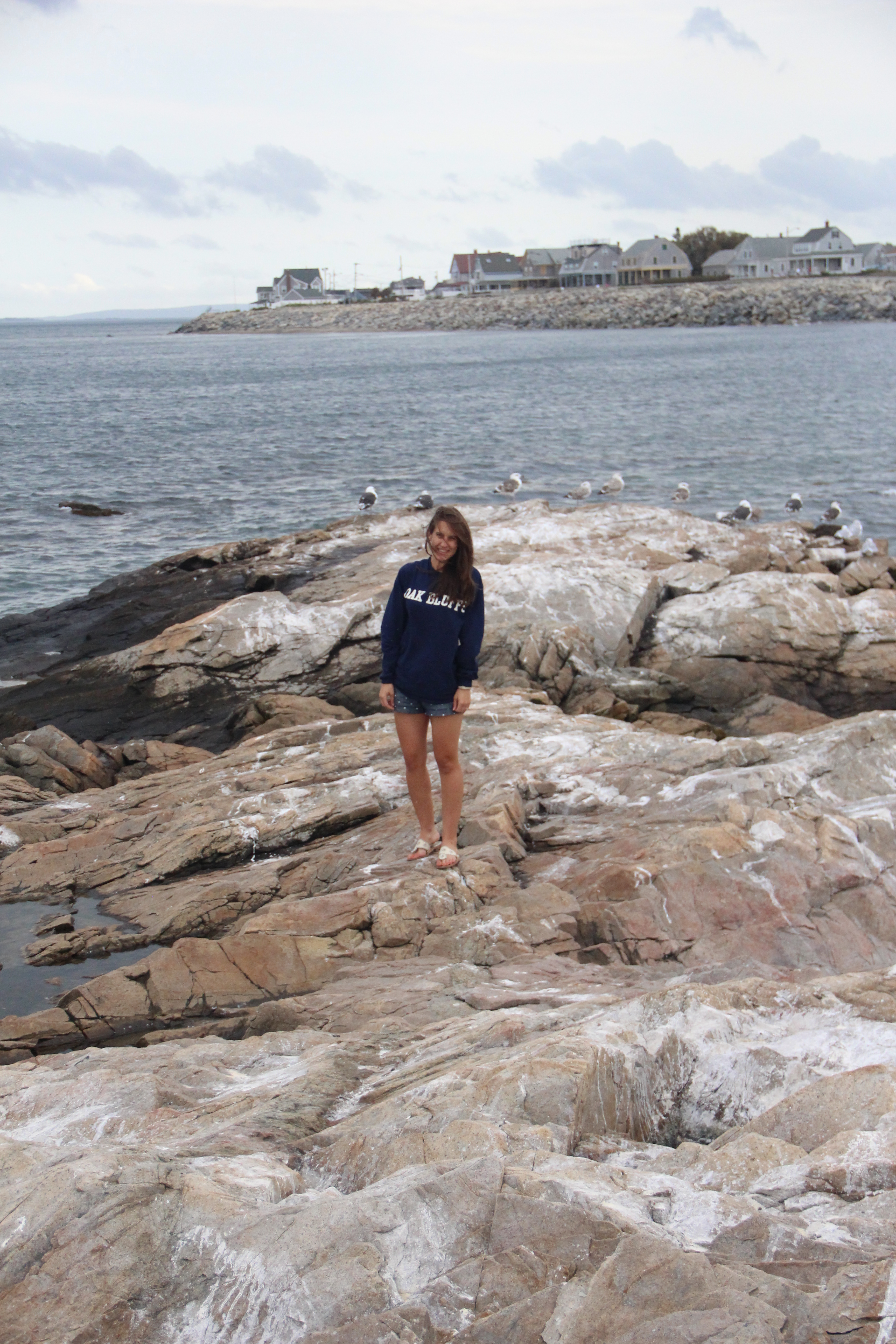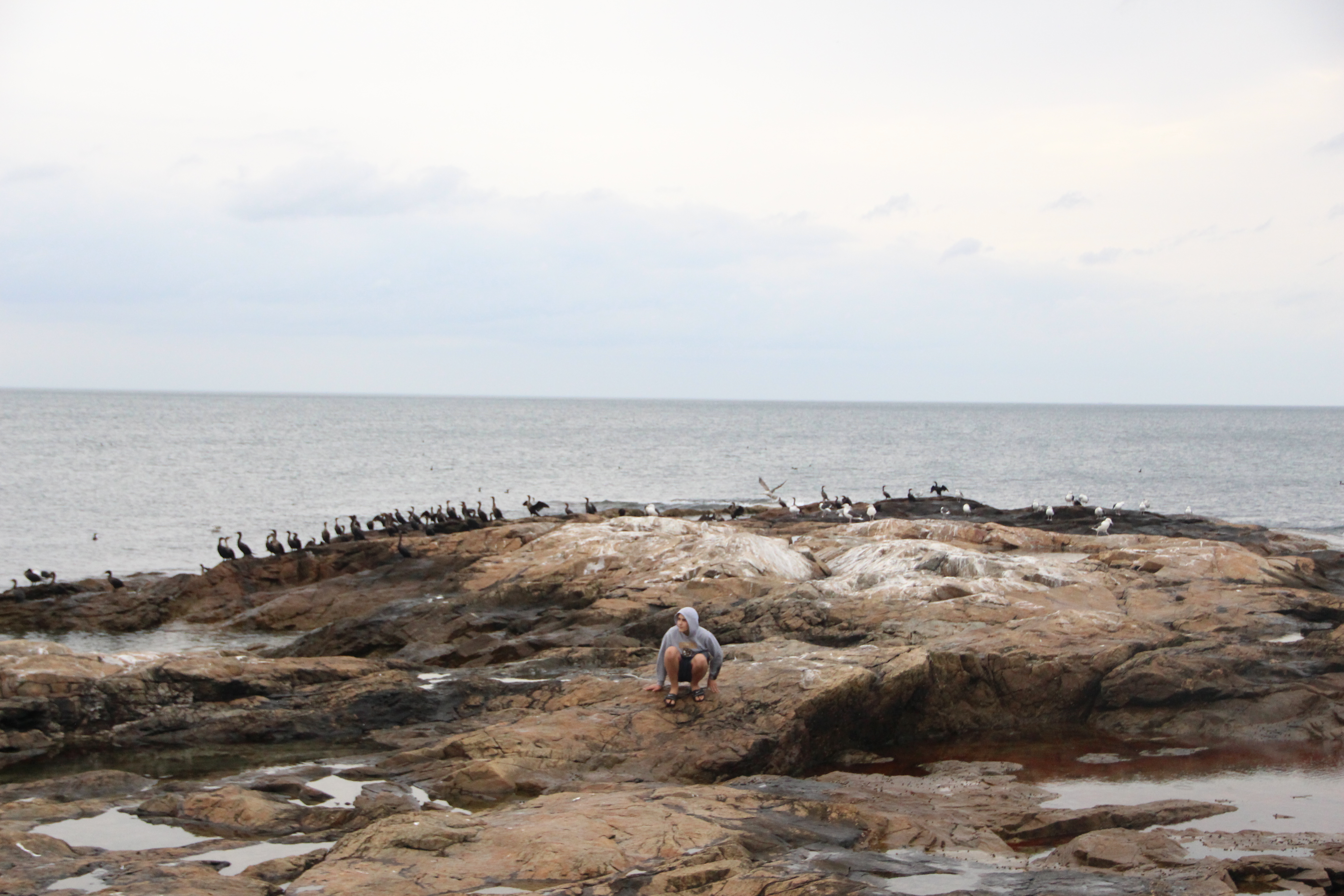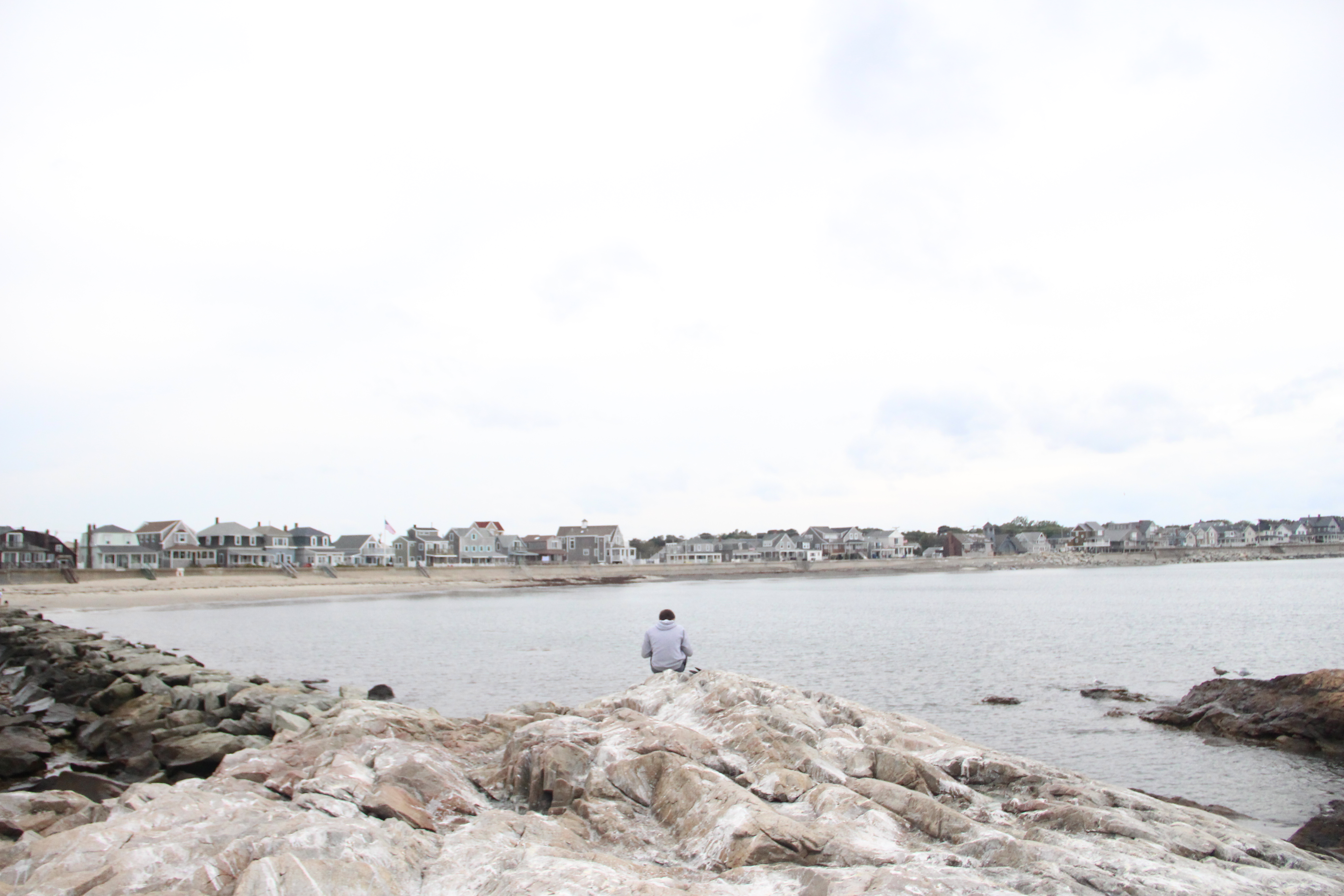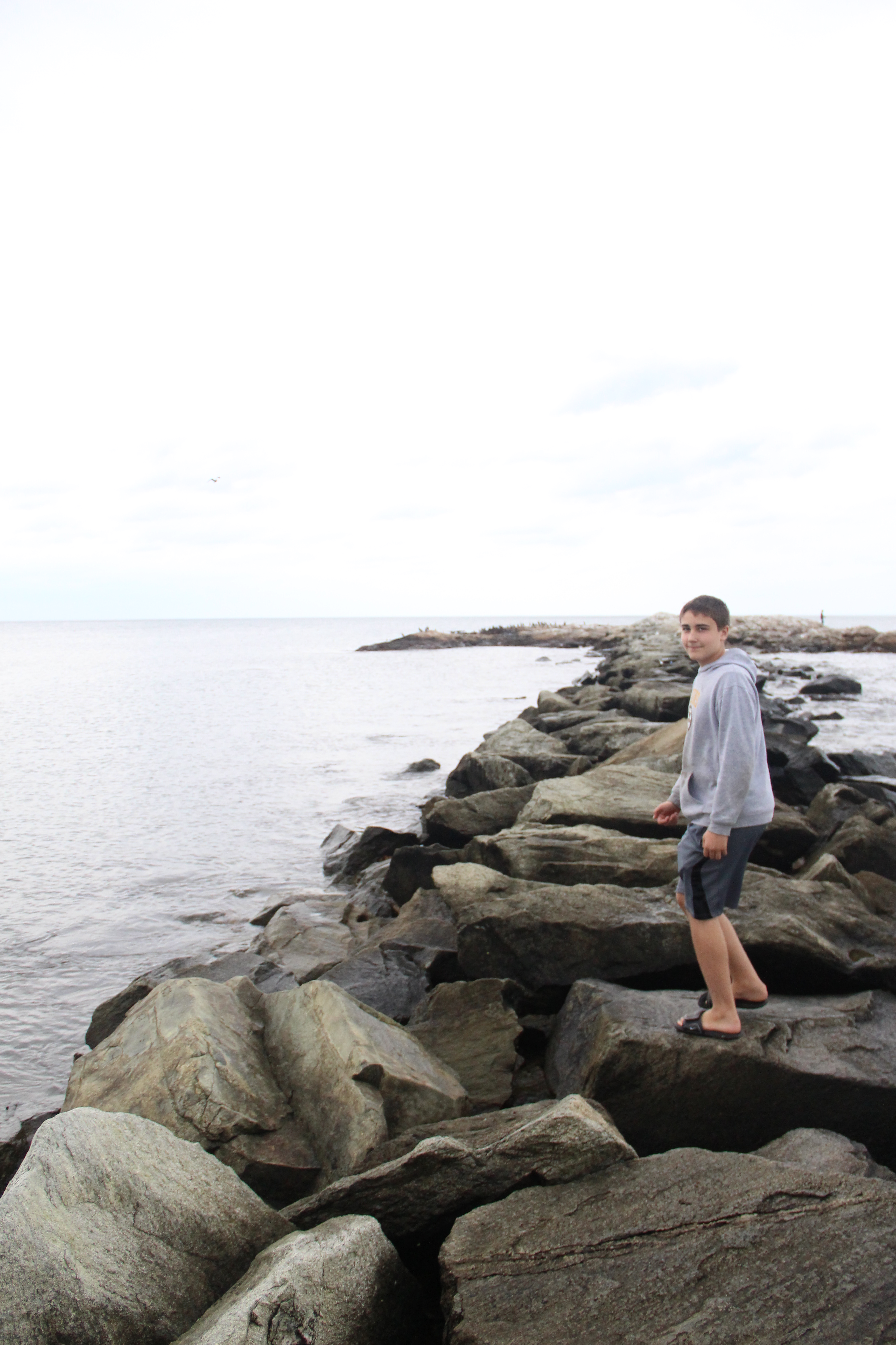 My last day at home until Christmas. The last day in shorts, last day with feet in the ocean. The very last of summer on a cool and misty day. We ate seafood at the Venus II across the street. We climbed out to the end of the jetty. My brother chased the seagulls, and I shivered in the water, willing to do anything to touch it one last time.