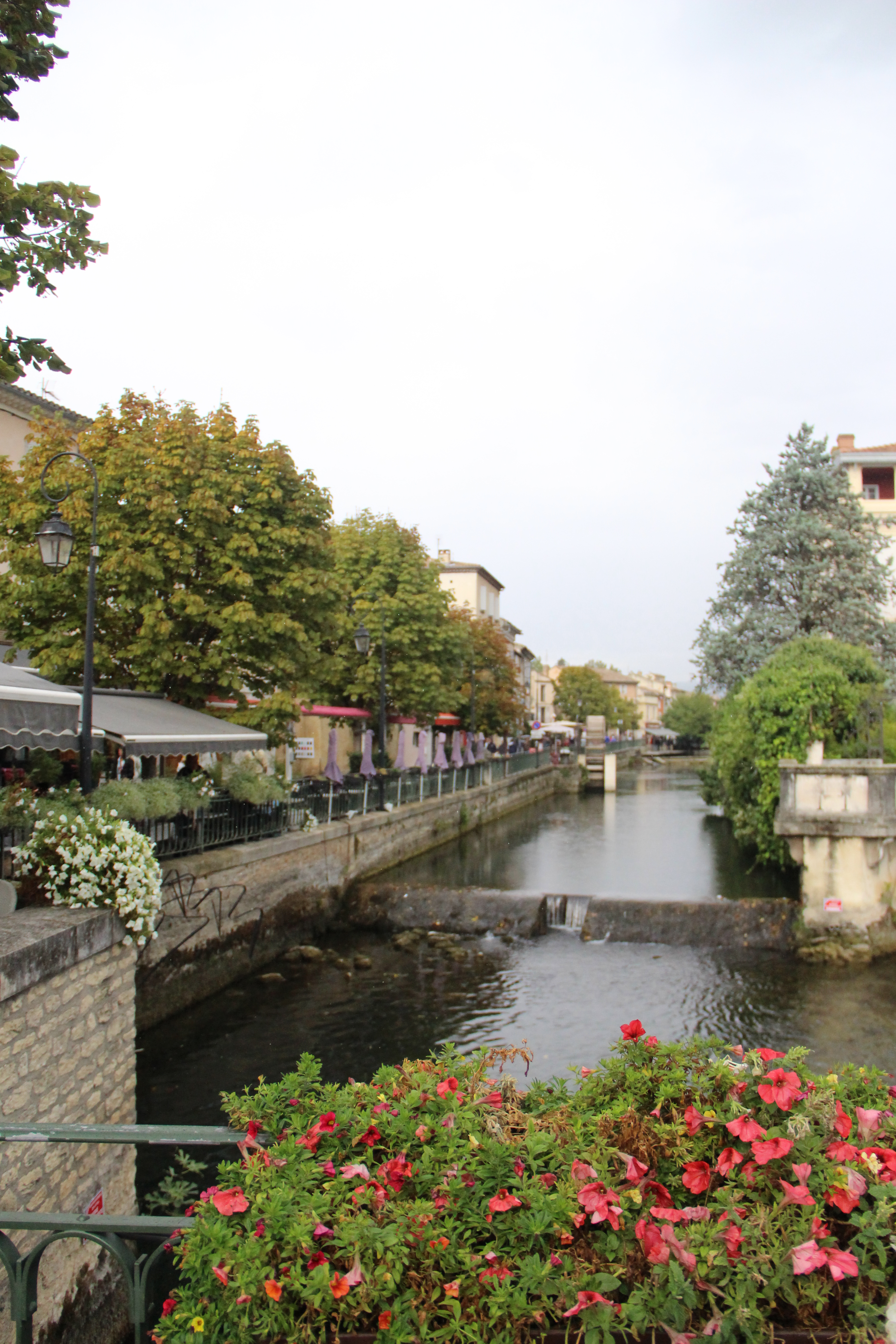 Sunday, market day! L’Isle-sur-la-Sorgue is famous for having one of the best markets in all of the South of France, and it did not disappoint. I left with: the best caramel sauce I’ve ever had in my life, the best mustard I’ve ever had in my life, a French market basket (the kind that were trending all summer at home, except mine is real), and a very full stomach, courtesy of the Corsican restaurant we wandered into for lunch. It was so lively, so charming – even on this hazy day.