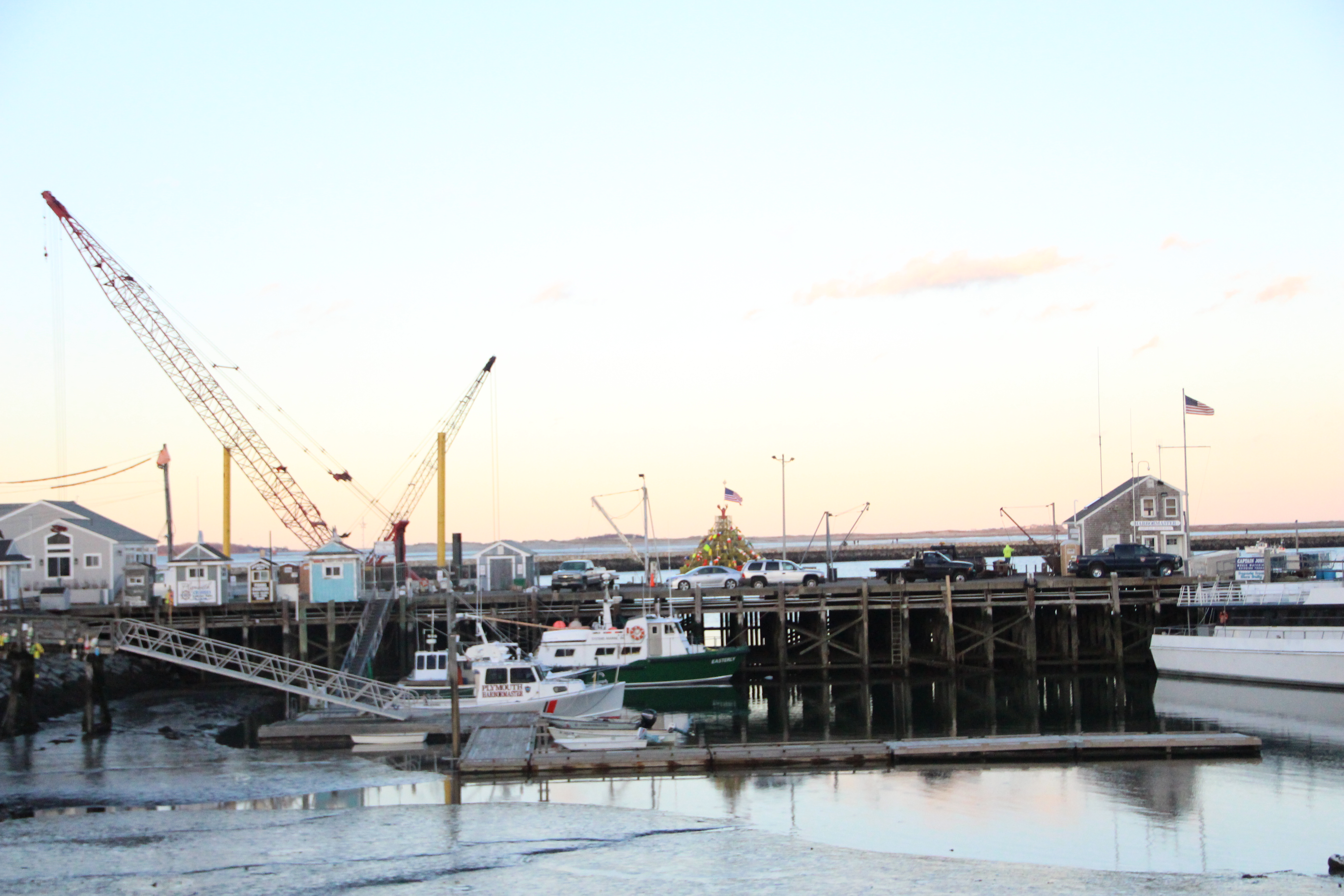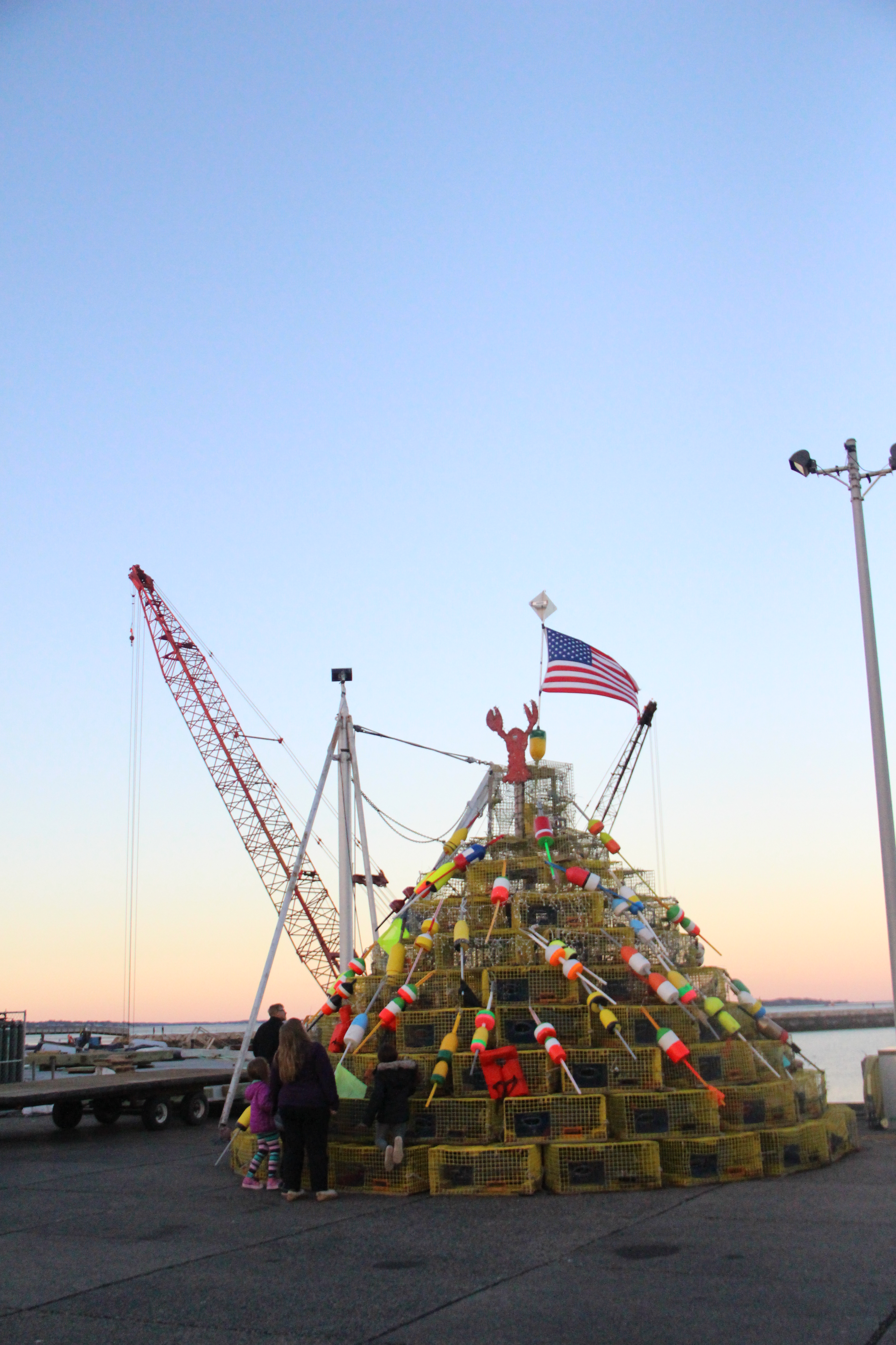 Meeting a friend for coffee in Plymouth Center. I arrived a little early and parked along the harbor. It was just in time for the sunset, and the lobster-trap tree was still standing tall, a few days after Christmas.