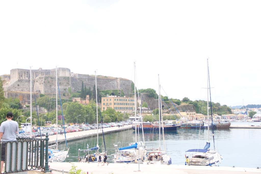 We woke up early to run one last time along the coast of Sarandë before we needed to leave Albania; this time, we ran in the opposite direction toward the port, and it was an entirely different world. We hadn’t realized that there was a boardwalk with restaurants and souvenir stands on this end of the street – it definitely was a more active part of town, but there was no more time to explore. Our time in Albania we over. We quickly packed and prepared to leave by 9:00 am, since we needed to return the rental car. This, to be honest, was an absolute nightmare. At the time, all of the roads to the port were closed, our maps couldn’t navigate around the closed roads, and no one spoke English enough to help us. It was so, so, so stressful, especially knowing that we had a ferry to catch, but finally, the rental car company told us just to stop on the side of the road and that they would find us, which was such a relief. After that ordeal was over, we walked to the port, bought our tickets, and finally boarded the 10:30 am ferry to Corfu. Surprisingly, the boat was so old and dingy with no clear windows. It was a bit disappointing having no view, but at that point, we were simply happy to have made it on time.