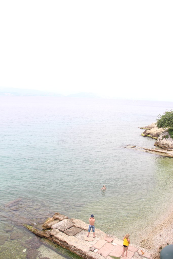 We woke up early to run one last time along the coast of Sarandë before we needed to leave Albania; this time, we ran in the opposite direction toward the port, and it was an entirely different world. We hadn’t realized that there was a boardwalk with restaurants and souvenir stands on this end of the street – it definitely was a more active part of town, but there was no more time to explore. Our time in Albania we over. We quickly packed and prepared to leave by 9:00 am, since we needed to return the rental car. This, to be honest, was an absolute nightmare. At the time, all of the roads to the port were closed, our maps couldn’t navigate around the closed roads, and no one spoke English enough to help us. It was so, so, so stressful, especially knowing that we had a ferry to catch, but finally, the rental car company told us just to stop on the side of the road and that they would find us, which was such a relief. After that ordeal was over, we walked to the port, bought our tickets, and finally boarded the 10:30 am ferry to Corfu. Surprisingly, the boat was so old and dingy with no clear windows. It was a bit disappointing having no view, but at that point, we were simply happy to have made it on time.