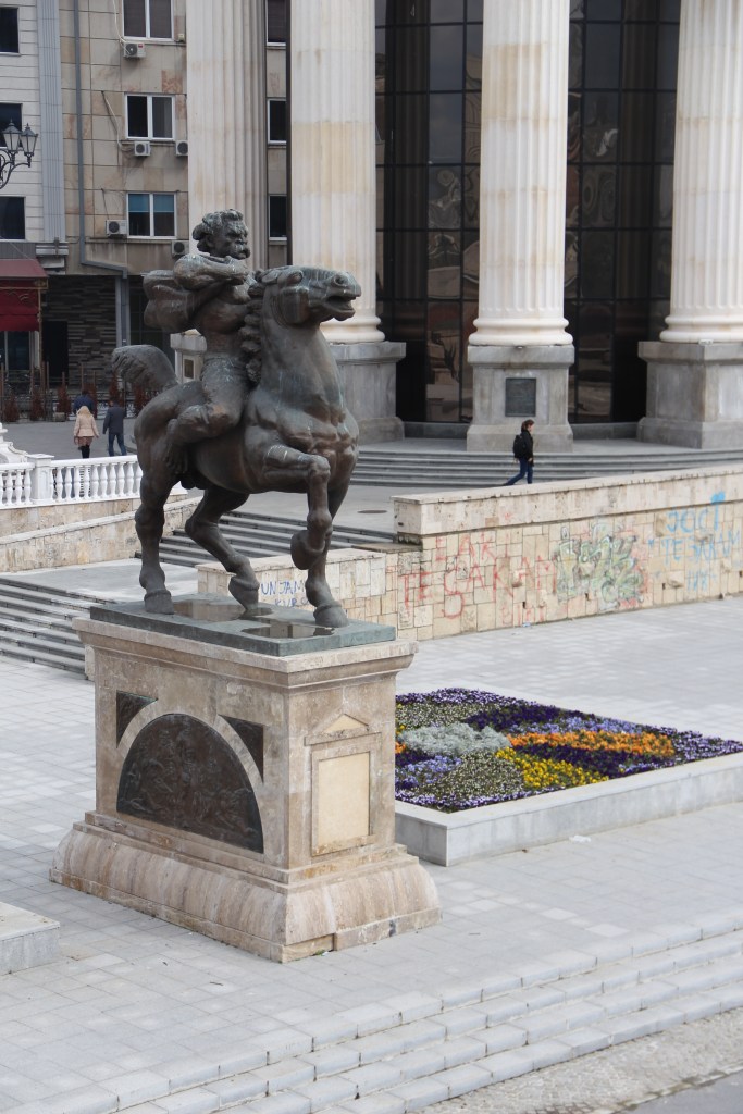 Skopje, Macedonia, is known as Europe’s “capital of kitsch,” recognizable by it’s overwhelming and apparently random assortment of statues scattered across all streets in the city. There’s the giant “Man on a Horse” in the square (obviously, though not publicly for political reasons, Alexander the Great); there’s the small man with oversized shoes in the alley, a stone swimmer frozen in a forever dive in the river. I’ve read that there’s no conclusive number on how many statues there are or even any conclusive record of where they all are. It’s truly bizarre – bizarre, but also mesmerizing. As if, upon waking one day, you found yourself but a small character in a larger-than-life movie set or some alternate reality Disney World. It was quirky; it was fun. It’s all part of the very controversial “Skopje 2014” project, which saw the government spend hundreds of millions of dollars on urban embellishments in an effort to boost nationalism and tourism. That’s hundreds of millions of dollars of development dollars spent this way in one of the poorest countries in Europe.