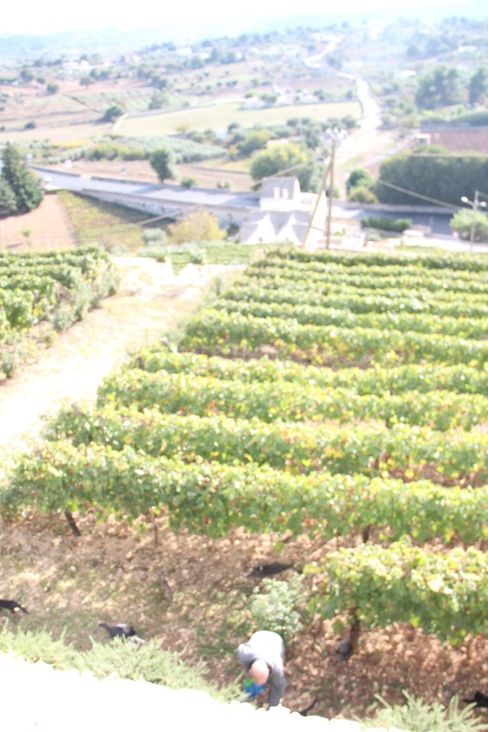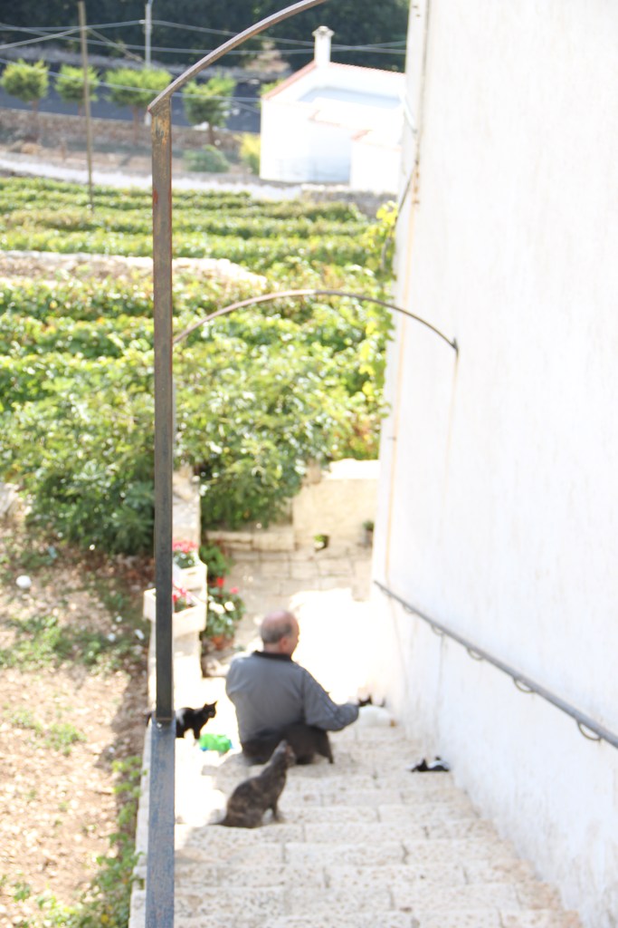 Locorontondo is on a hill. We walked along the edges of the old town, looking out across the whole of the countryside, below. There was a simple vineyard, an old man sitting on his steps on its edge. And there were cats, at least 10, and they just kept coming to the man. He was so happy! Eventually, he stood up and walked into the vines to feed them.