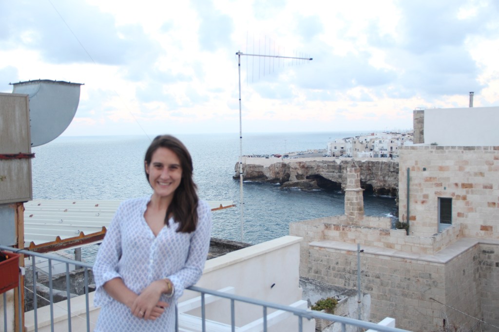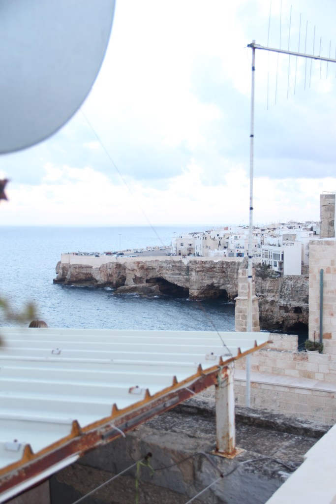 Polignano, a terrace overlooking the sea, warm air, chatter in the streets, a blue sky morphs to cotton candy. Running along the sea wall, in the sea breeze, in the sun. A visit to the little juice bar in the center of an old town. Drinking green juice and stretching on the terrace, watching the waves.