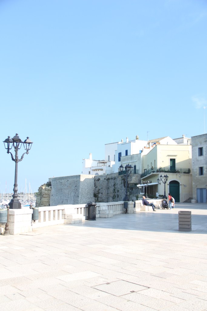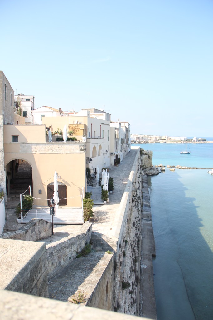 It was noticeable warmer in Otranto. A SoBe style strip of palm trees and a boat-lined main street giving way to an old town, to a castle, to a climbable fortress wall and unparalleled views of the blue, blue see. Open squares, such bright light.