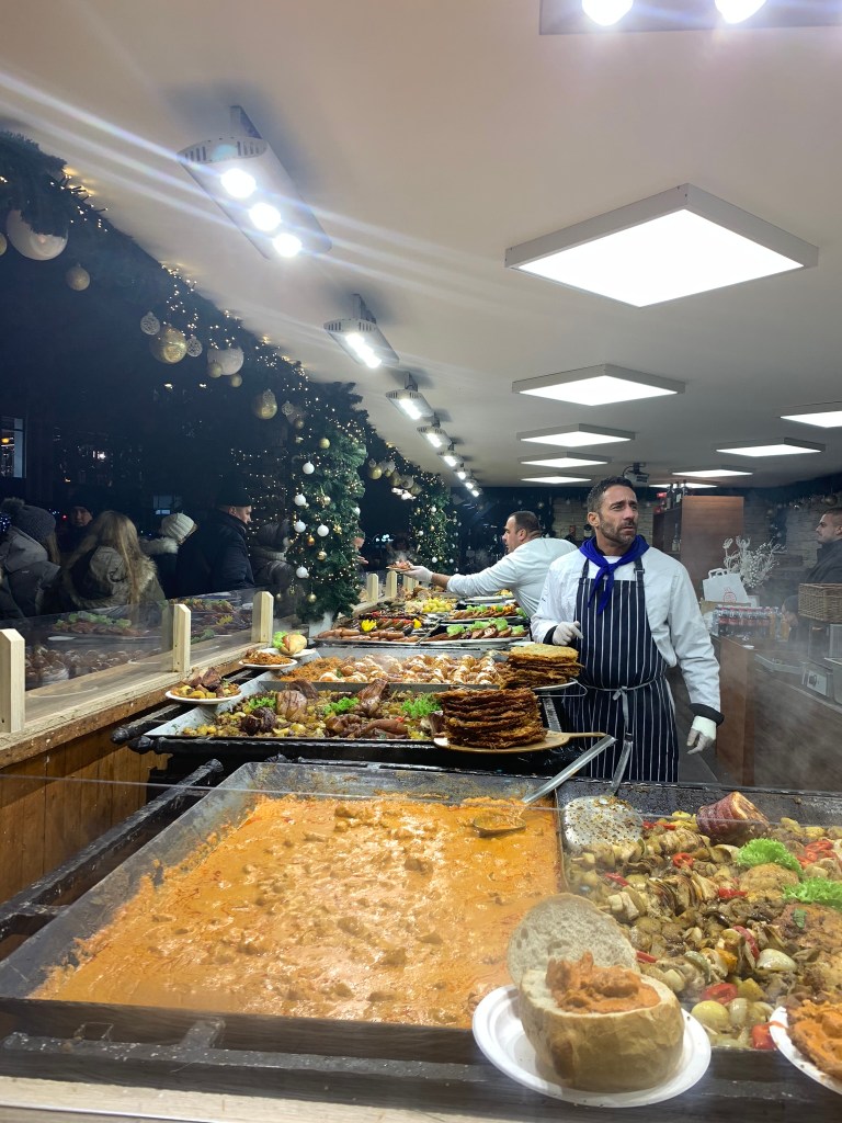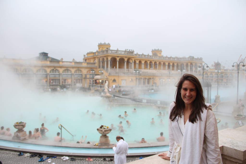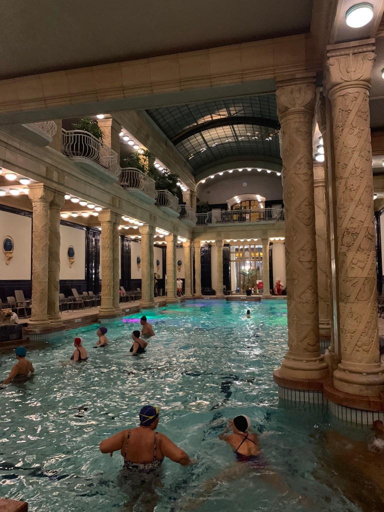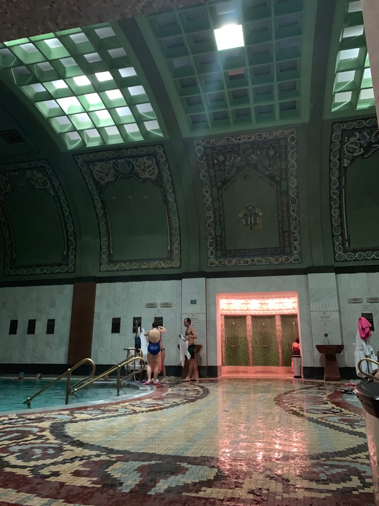 The bastion, a wedding cake, a fairy tale castle. Gellért, intricate. Colorful. Moving from pool to pool as it became dark outside, visible through the sky roof. Széchenyi, floating in a smoky haze, steam giving a sense of space. The temperature board flickered between zero and one. Soft chatter, whispers in the breeze. Ruins bars, scattered haphazardly, mismatched furniture, graffiti. Still early, nearly empty for us. Later, after dinner, nearly impossible to find a seat.