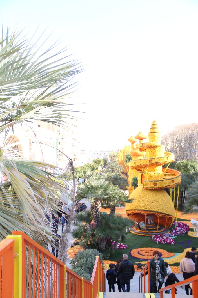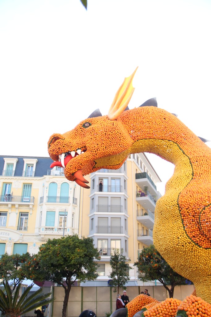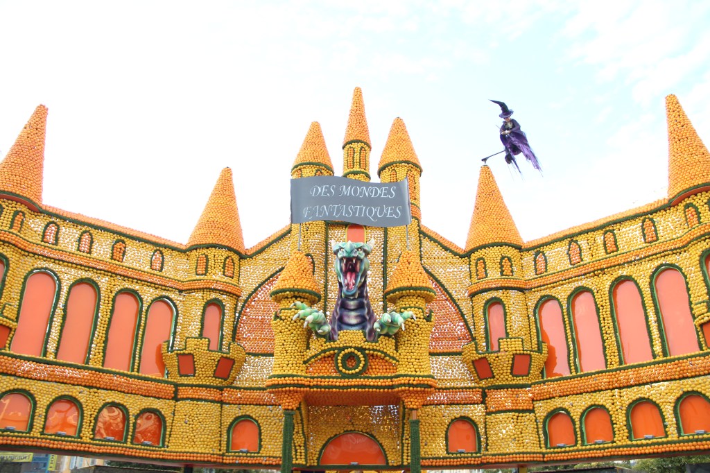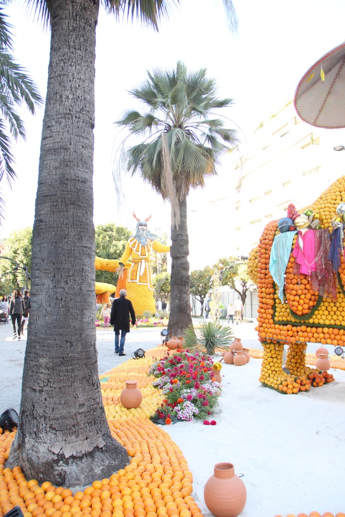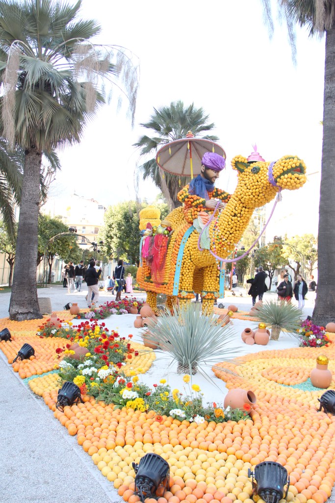 Citrus wonderland, citrus fest. Citrus dragon, citrus camel, citrus tree, citrus pop at the annual Fête du Citron.