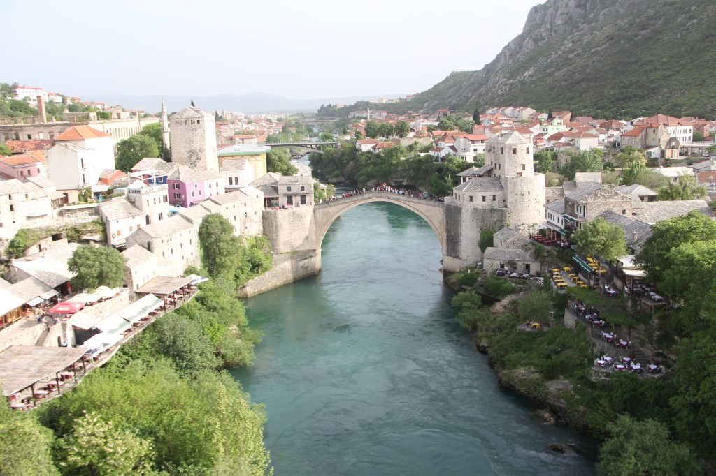 Did: Koskin-Mehmed Pasha’s Mosque, War Photo Exhibition, Wandered the Old Bridge area of the Old City of Mostar