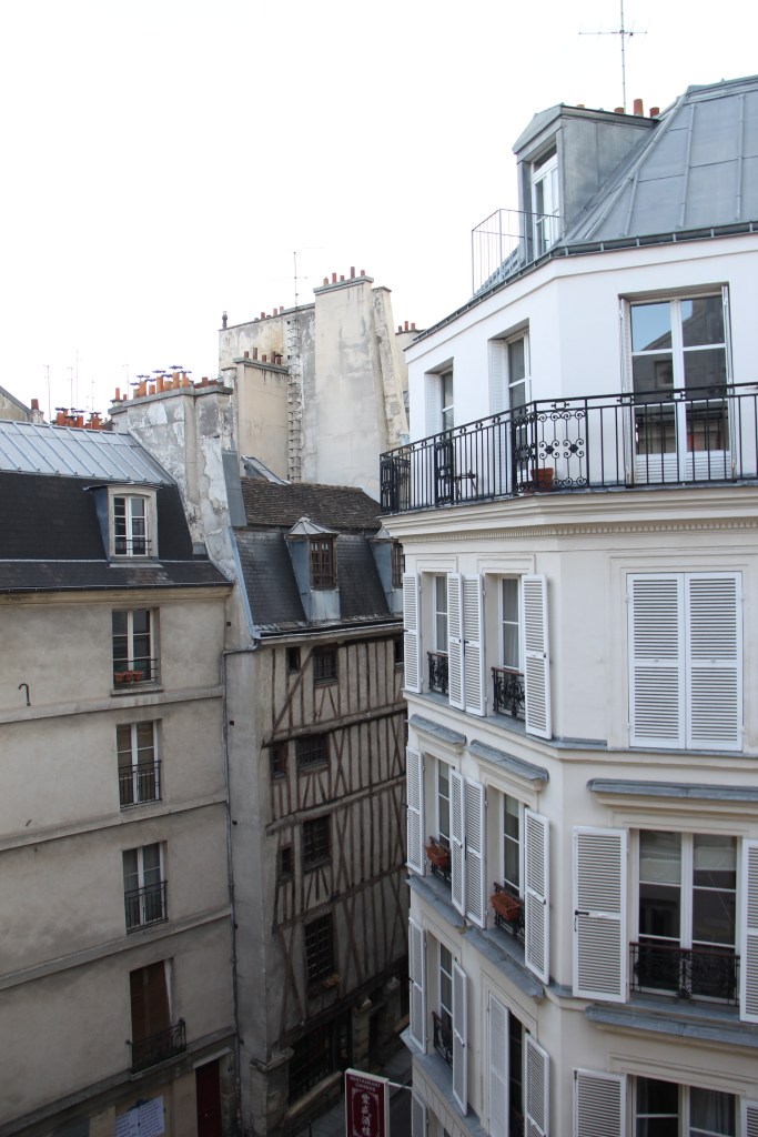 We arrived very late on a Wednesday evening and retrieved the key for our perfect hotel-apartment at Les Patios du Marais. It was a tiny room, up four flights of stairs, with a bitty kitchen and classic Parisian rooftop view.