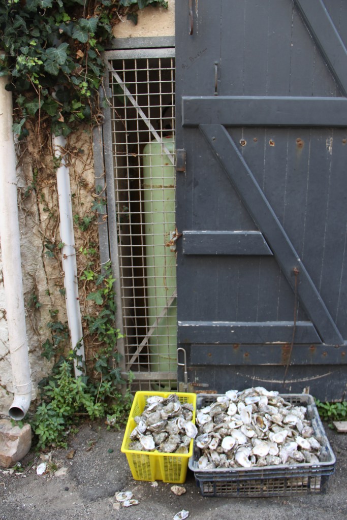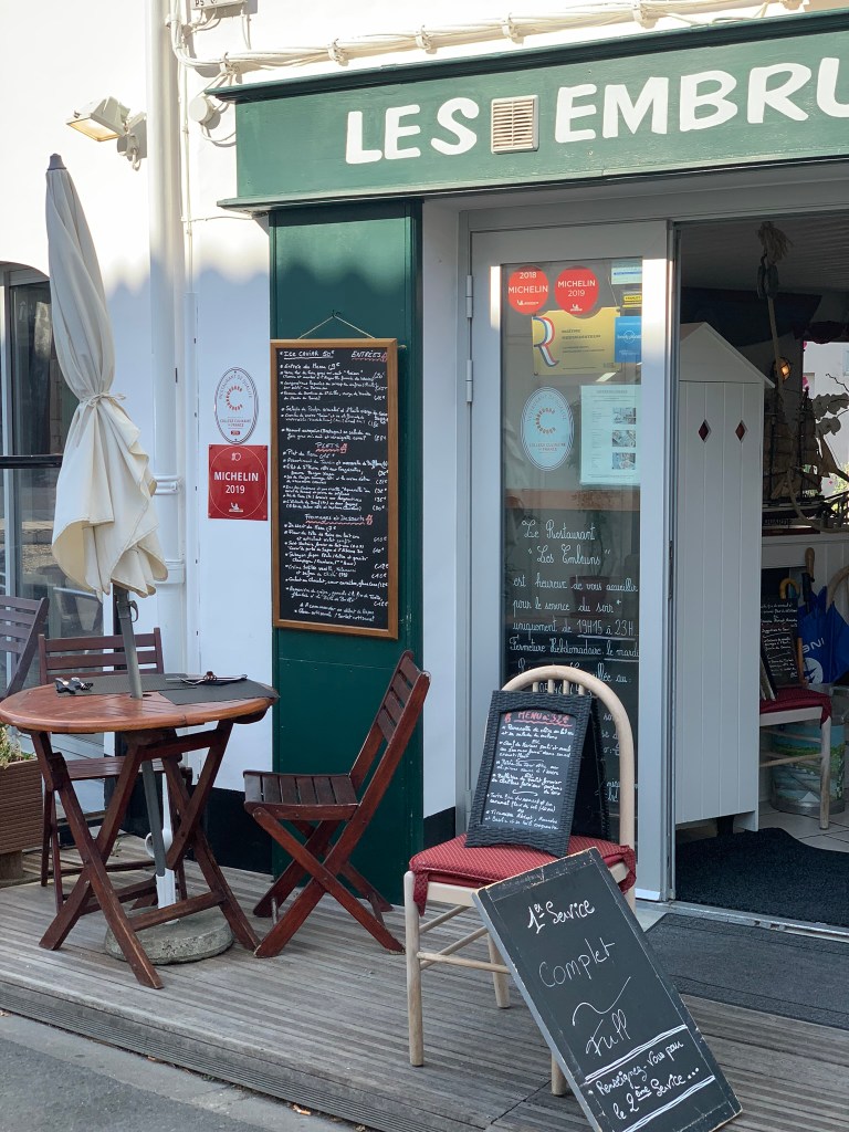 We weren’t planning on an early dinner, but by chance, we passed by a small restaurant off the water that we had read about before arriving – a 2019 Michelin watch list restaurant with no star yet, since it had just been discovered (feasible to think it will have one soon). When we were told there was one table left for the early service at 7:15 pm, we signed up for the reservation. That gave us twenty-five minutes to wander around the harbor cobblestones in the meantime, past solitary flower stocks and discarded oyster shell buckets. The chatter of French in the breeze, the bistros and their colored umbrellas and colored chairs. Instantly, a place I felt I knew and loved.