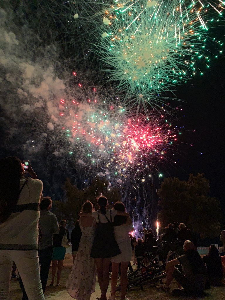As we wandered back to our Airbnb, the town was even more alive. Around 11:00 pm, we joined the masses on the waterfront for the fireworks and sat on the grass watching the explosions in the sky. Full, to be there. And when it ended, we walked home to go to sleep for an early start the next day.