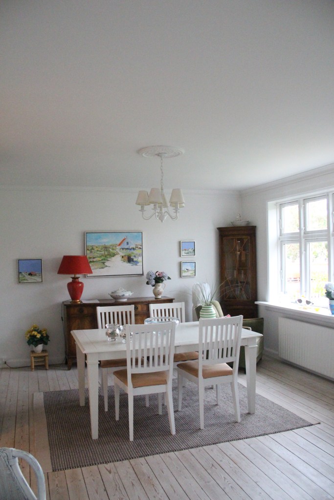 To get to Skagen, the northernmost peninsula of Denmark, we flew from London Stansted to Aarhus, not because Aarhus was the closest place to fly to (Aalborg), but because there were no flights to Aalborg on Fridays from Stansted. We rented a car, drove 2.5 hours north, arrived at about 5:30 pm. An older Danish woman met us in the neighborhood to deliver keys to our flat, a classic style Skagen yellow house with a red roof and lots of light. I loved that house and its white Danish, pinewood floors (original to the house, according to the woman) that were the most beautiful floors I have ever seen. Its open space, wall to wall windows, scattering of local art, minimalism, modernism, and antique. A green armchair facing the window, looking out across the garden and pink hydrangea bushes. It was small, simple. It had everything we needed.
