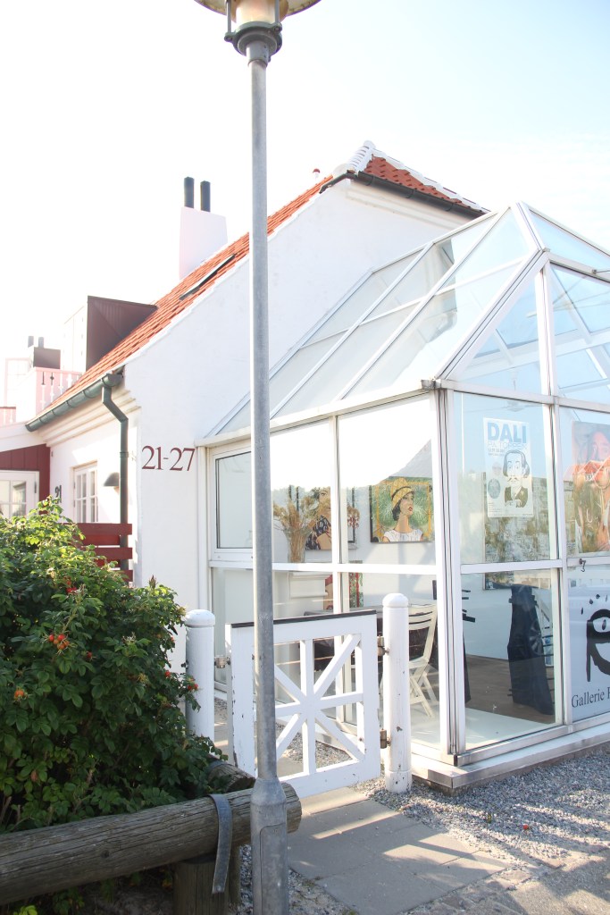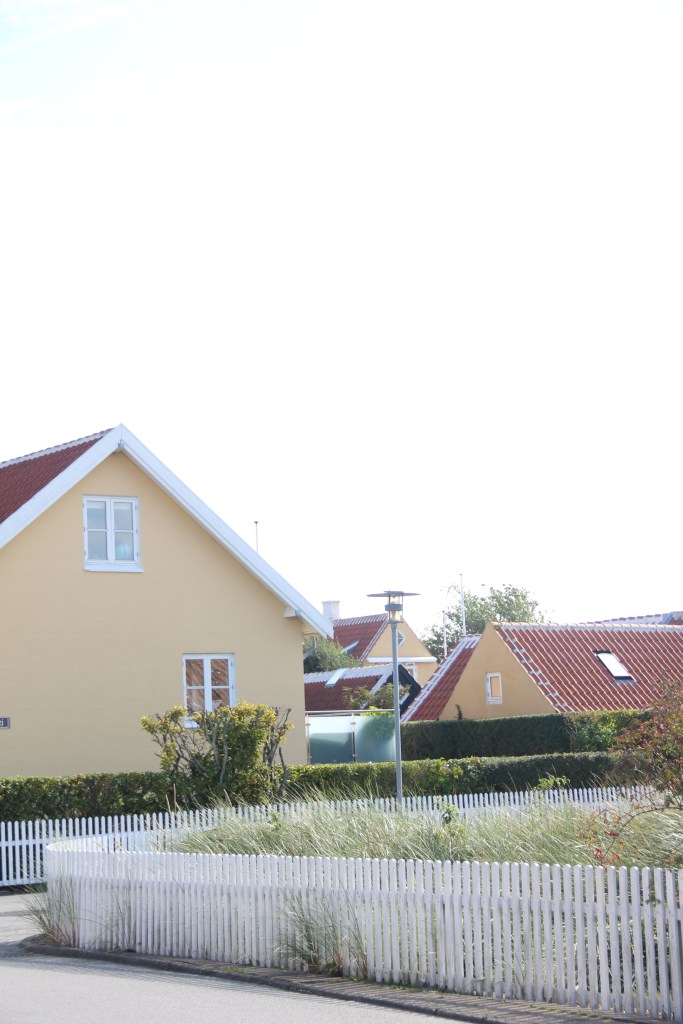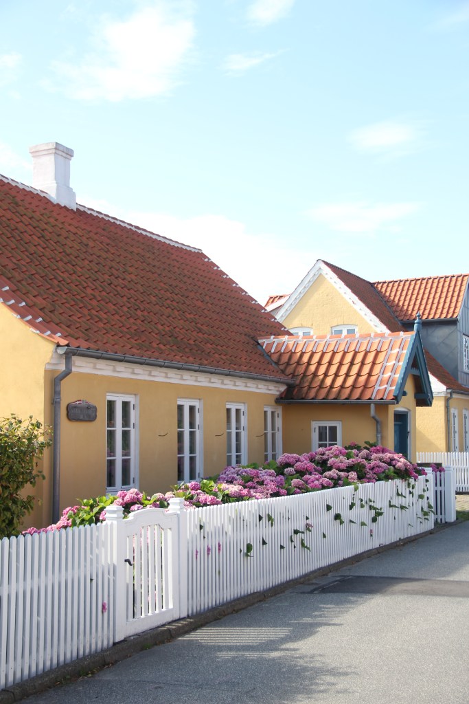 Skagen is bright, white, yellow houses, red. Red roofs, red on the harbor, a red lamp. Old pinewood floors and a pink hydrangea bush.