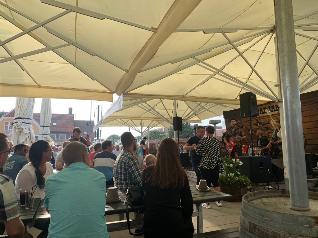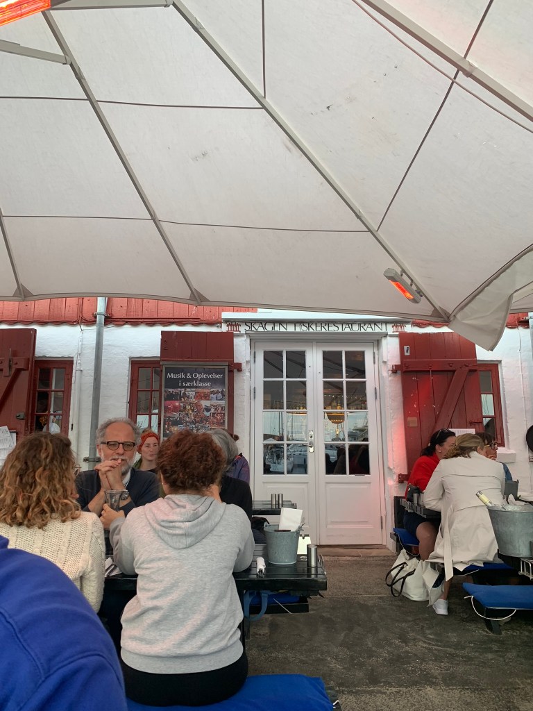 Grenen was wonderful and wild. When we left to bike back through town and further south to Old Skagen, it was deep into the afternoon. Old Skagen is more yellow houses, quiet streets, and a simple beach, allegedly the place to watch the sunset whilst in Skagen, though we did not stay long enough to see. It’s quaint and quiet with not too much happening, but a lovely place for bike riding and fresh air. It was almost five by the time we left, so we decided to postpone some of the other things we hoped to see for the next day and head back to town instead. We had passed a brewery on the way down and heard live music coming from the patio, so we wanted to check it out for ourselves. This was such a great decision. The entire patio was packed, the band was really, really good (an old school rock band with personality). Somehow, we squeezed into a gap in one of the otherwise full picnic tables and watched it all until the set closed just before seven. After that, things cleared quickly. We moved to an empty table and had another round of drinks until we were nearly the only ones left and only then did we make our way to the harbor again for dinner.