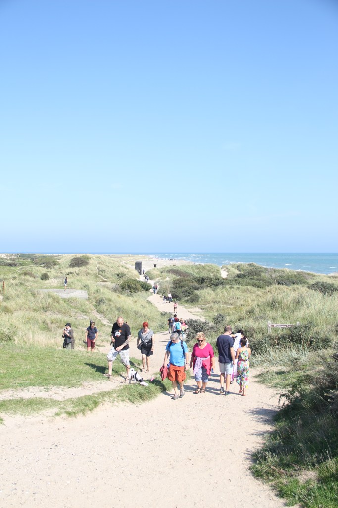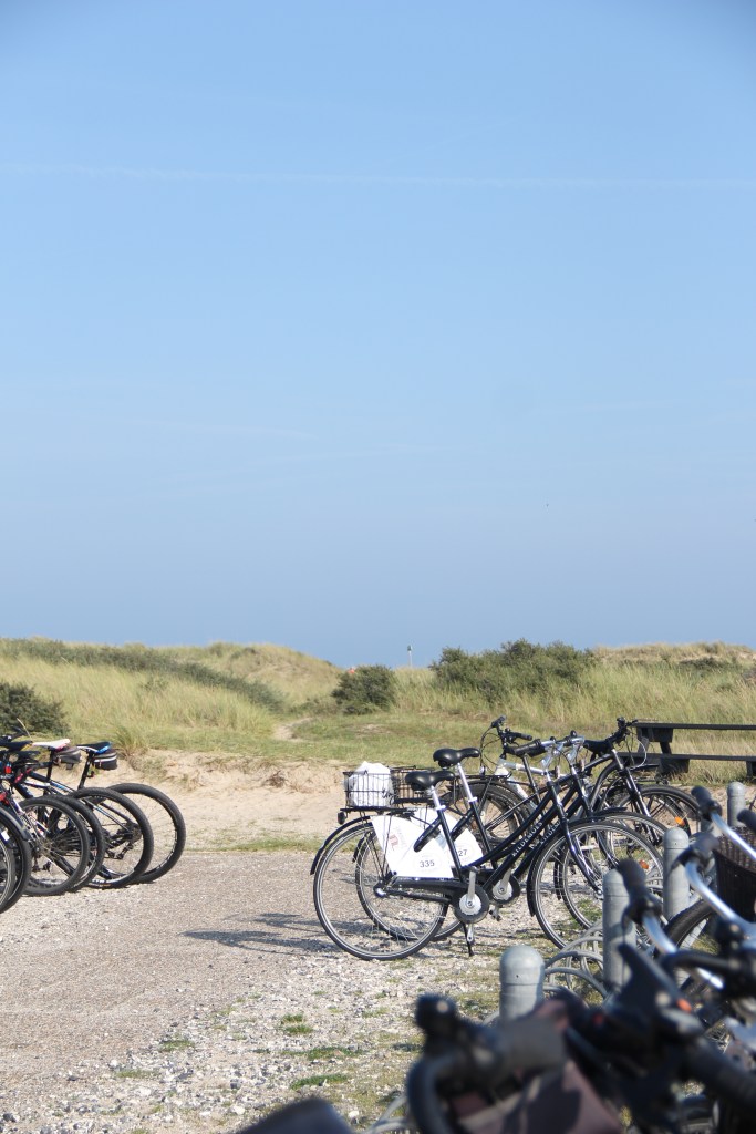 Grenen, the northernmost tip of Denmark, was a quick, paved ride from Skagen center past heather fields and sand dunes and the old grey lighthouse, where we stopped to walk along the beach and see the ocean. We locked our bikes in the parking lot. It was full of activity.