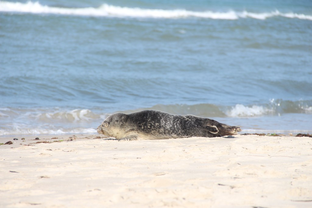 Wasing in was oddly peaceful, even with all of the people. Out of the water, we saw a baby seal, sunning himself on the beach (probably while his mother was off hunting for food). We spread out of blanket, far enough away to be safe but close to watch, and sat there in the sun for a very long time. I watched the Sandormen “sand worm” tractor-train-car come and go, come and go, delivering and removing more masses with each trip. It moved across the open sand, disappeared in the dunes between us and the parking lot, another world.