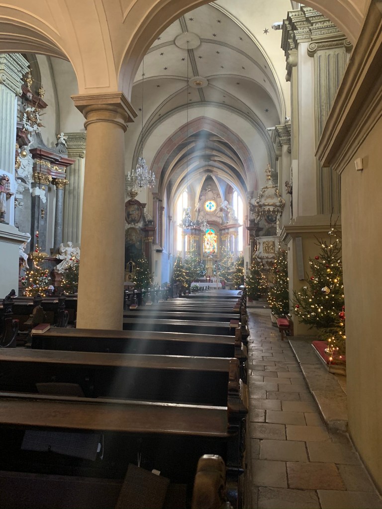Epiphany in Bratislava, capital of independent Slovakia,“Pearl of the Danube,” the once coronation site of Hungarian kings. After Christmas quiet with bits and pieces left for the wise men’s arrival. The last few of the wooden Christmas market stalls and small evergreen trees, a wood-carved nativity in the square. Christmas trees inside of a church. Cold air, sun. Grey river, flowing. Hungarian-empire grandeur, flowing into colorful, cobblestoned Old Town and Communist concrete. Just enough of many things, enough to be whatever one needs it to be.