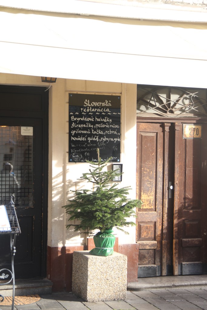 At 3:00 pm, I went into a traditional Slovak pub for food – I know, a weird time to eat. But I was starving and couldn’t find anything to snack on or takeaway, so I gave in and sat at the red and white checkered table alone, ate Slovak cheese and dumplings with beetroot; it was so cozy and warm, the last bits of Christmas decor still dangling from the rafters. Afterwards, rejuvenated, I walked around the Christmas square as the sun began its descent; then, out of Old Town and past the KGB bar that friends had told me to visit. I didn’t sit inside, since it was getting late, and I didn’t want to drink alone.