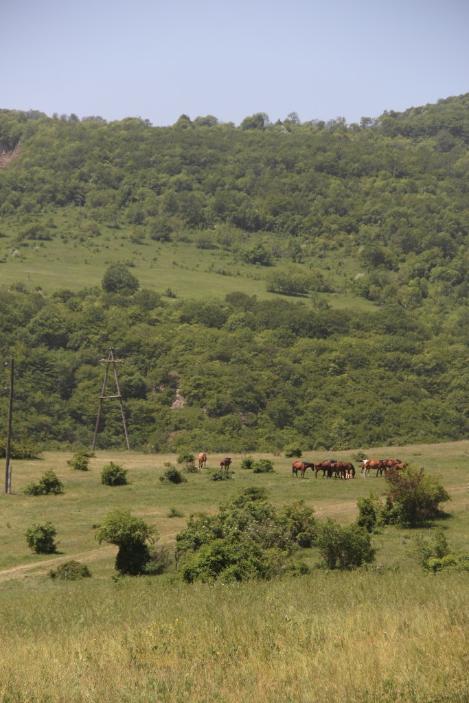 Fifteen miles outside of Tbilisi, but over an hour of driving away, tossed around on rock and dirt of steep cutting hill roads. A small stable clearing. Nature is the only noise, pure wild bliss. Bread, cheese, and fresh strawberries waiting for us, my dream.