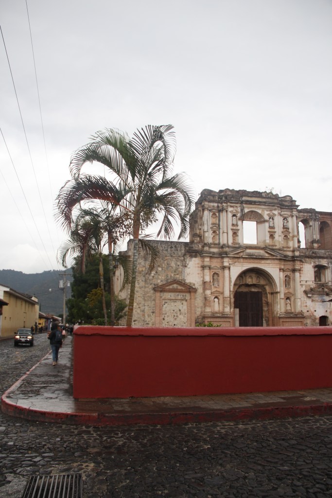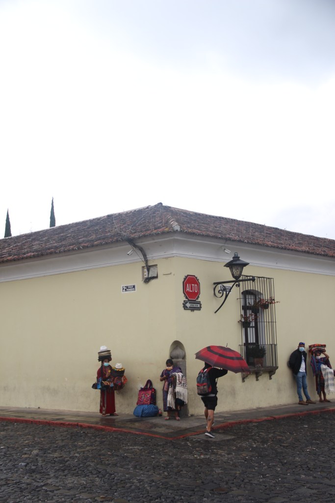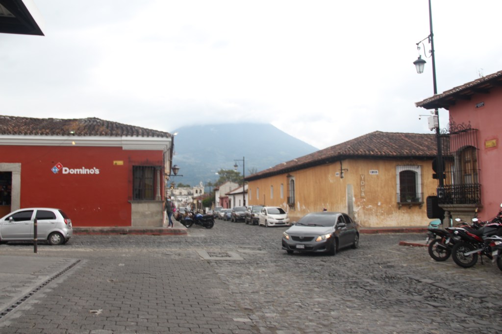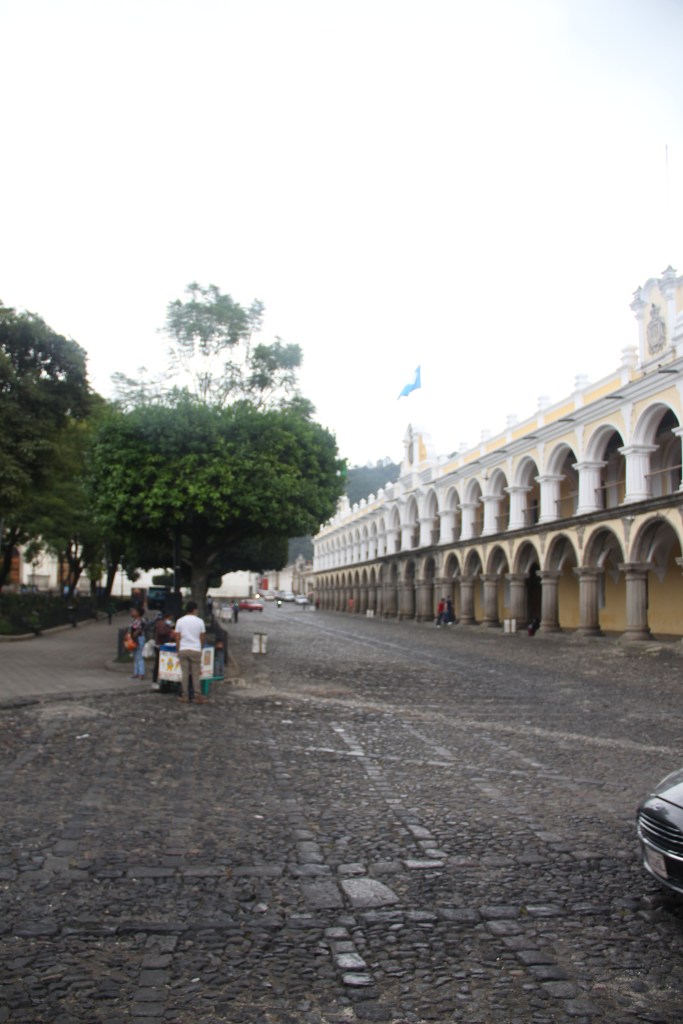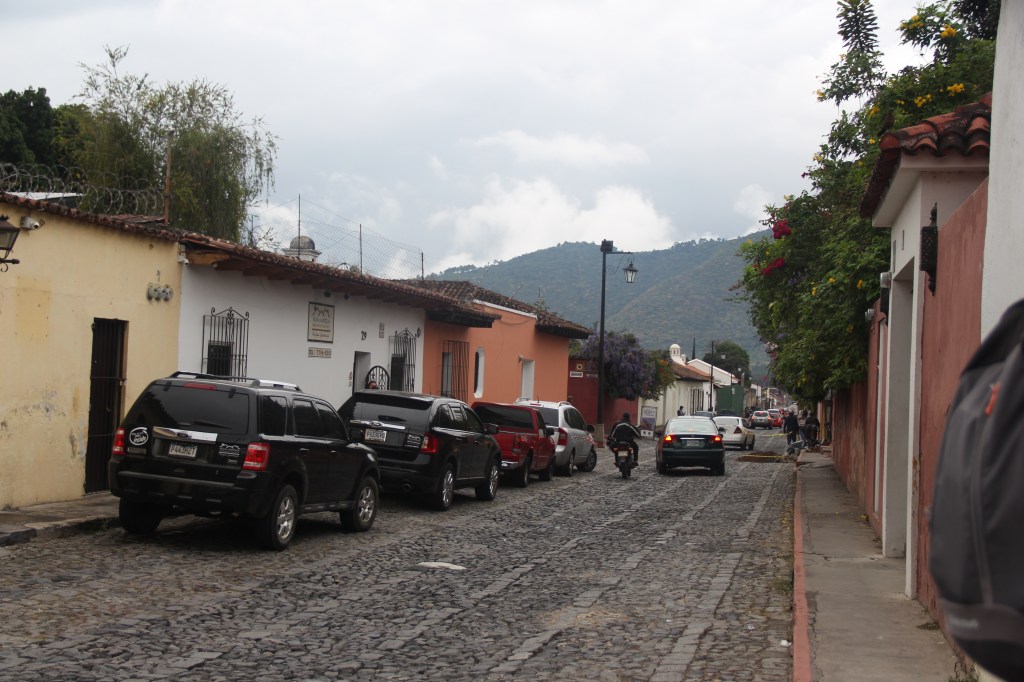Antigua is yellow and rainbow. A grid of cobble streets. Cars in lines. Everything is flat. Green and pink flowers stream over stone walls. Walking directly up to doorways to see what’s inside, because there are no signs.