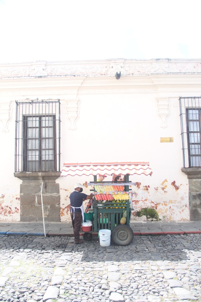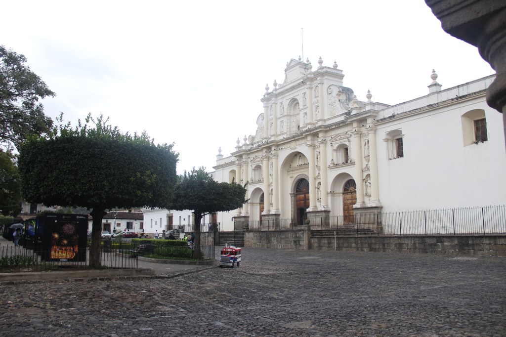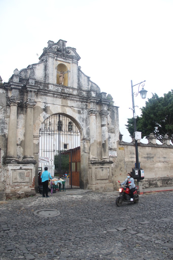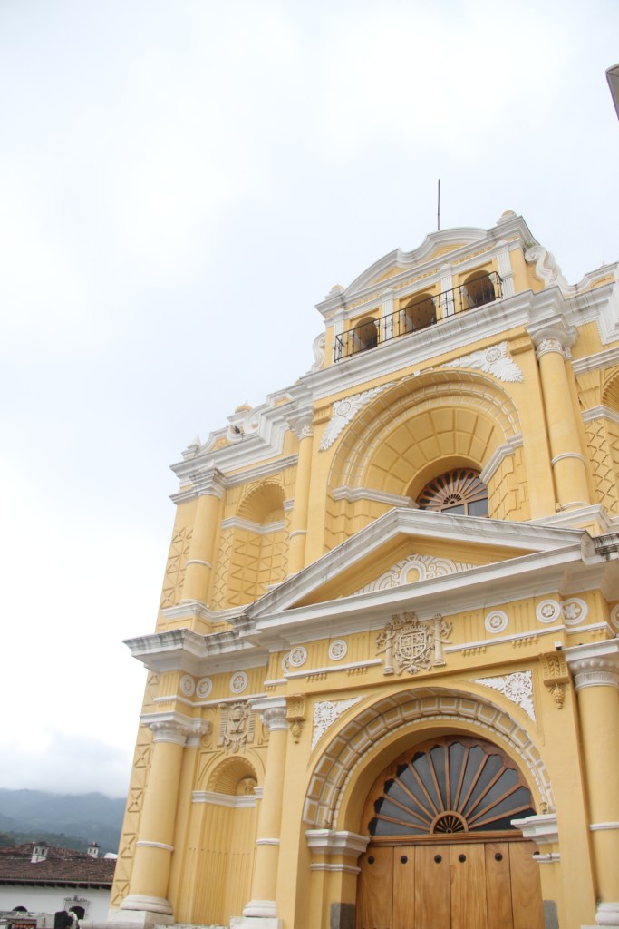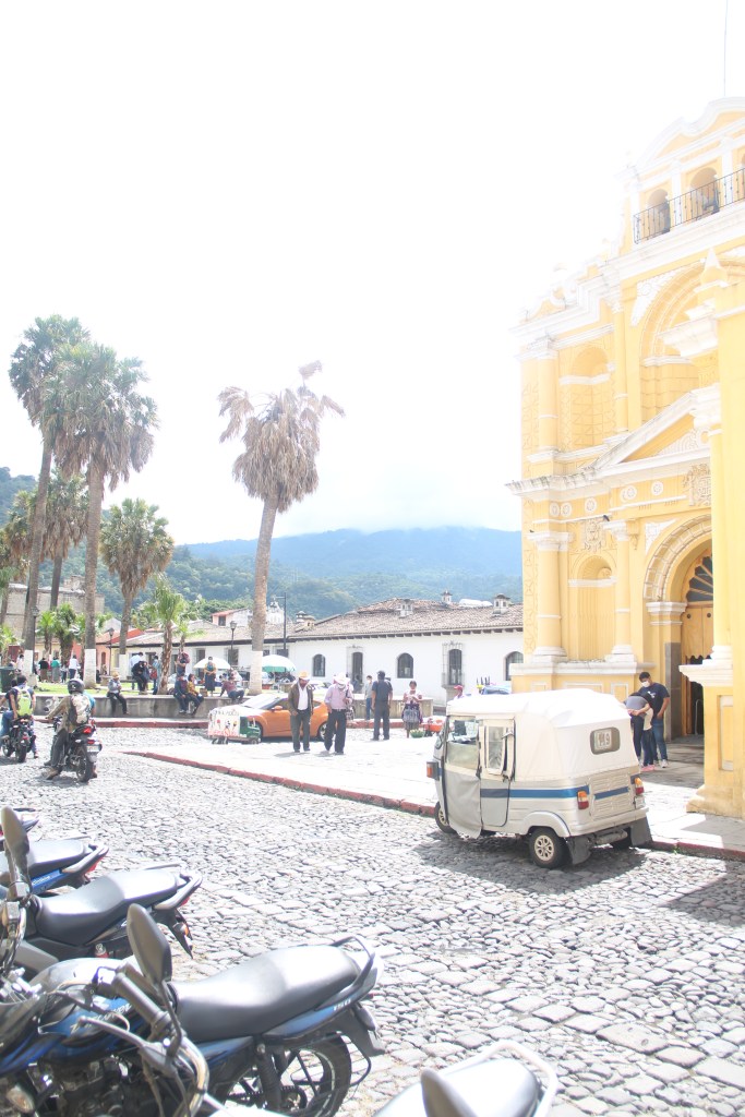 Antigua is yellow and rainbow. A grid of cobble streets. Cars in lines. Everything is flat. Green and pink flowers stream over stone walls. Walking directly up to doorways to see what’s inside, because there are no signs.