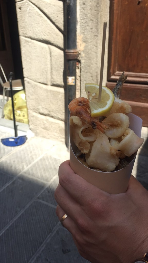 Sometime around 3:30 pm, after we had recovered from the morning, we ventured out for a late lunch, first stopping at a stand on the main road for a cone of seafood to takeaway – a local speciality and so delicious. We ate it as we walked to the train station and up the cliff-side to a cafe overlooking the sea, where we ordered salads and drinks. The days here seemed to last forever; I still don’t know how we had more time after that, but we did, and we weren’t sure what to do with it. Things were slow, ideal.