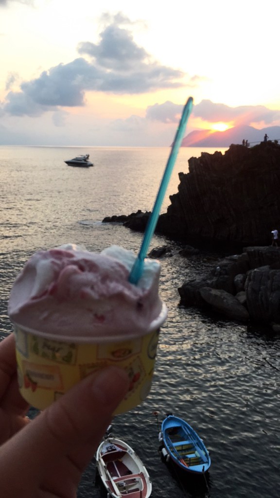 The rest of the evening was perfect. We walked to the marina for sunset and ordered gelatos from the same place in the wall that we ordered from on the night that we arrived. We sat on the wall overlooking the sea, two of many in a crowd doing the same thing. A jazz band performed at the top of the path. There, we listened to the music, and we watched the sun set over the sea until it was finally dark.