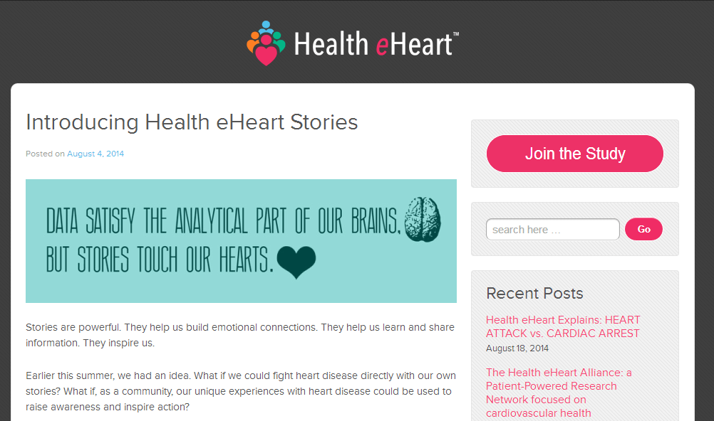 We had already suspected that many of you had deeply personal reasons for joining theHealth eHeart Study, but we were worried that you would shy away from sharing such personal experiences with us. We decided to try anyway. And so, we asked you, the Health eHeart community, to share your reasons for joining us. We had hoped to receive a trickle of responses. We received over 100 responses in just two days.