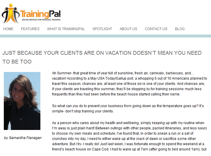 My point is that, just because they are on vacation does not mean that your clients are not in need of your services. It also does not mean that they do not want your services either. After all, they took the initiative to find you in the first place; most likely, they want to keep up their fitness momentum as much as you do. The issue, then, is not ‘how to get new clients for the summer,’ but ‘how to continue training your current clients, even when they can’t come in for their normal sessions.’