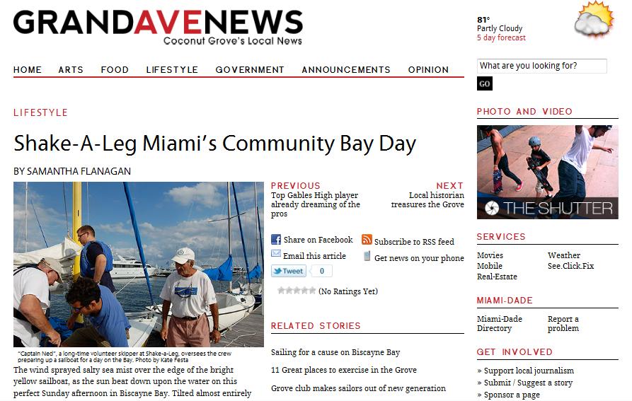 Community Bay Day takes place on the third Sunday of every month from 1 to 4 pm at 2620 South Bayshore Drive. The event is free and open to the public. Parking is available in the lot adjacent to the facility and will be validated as long as spots are available. For more information, contact Shake-A-Leg at 305-858-5550, or email watersports@shakealegmiami.org.
